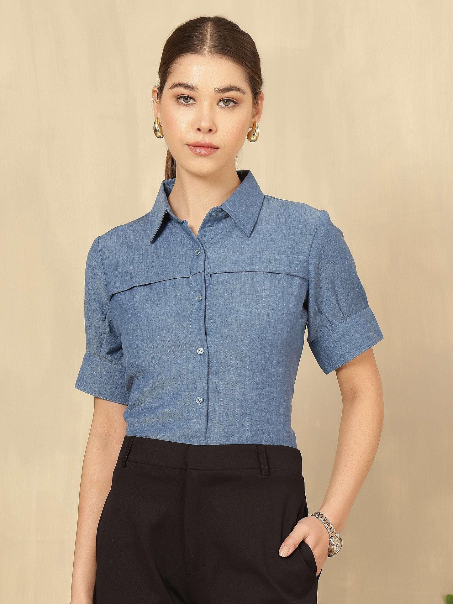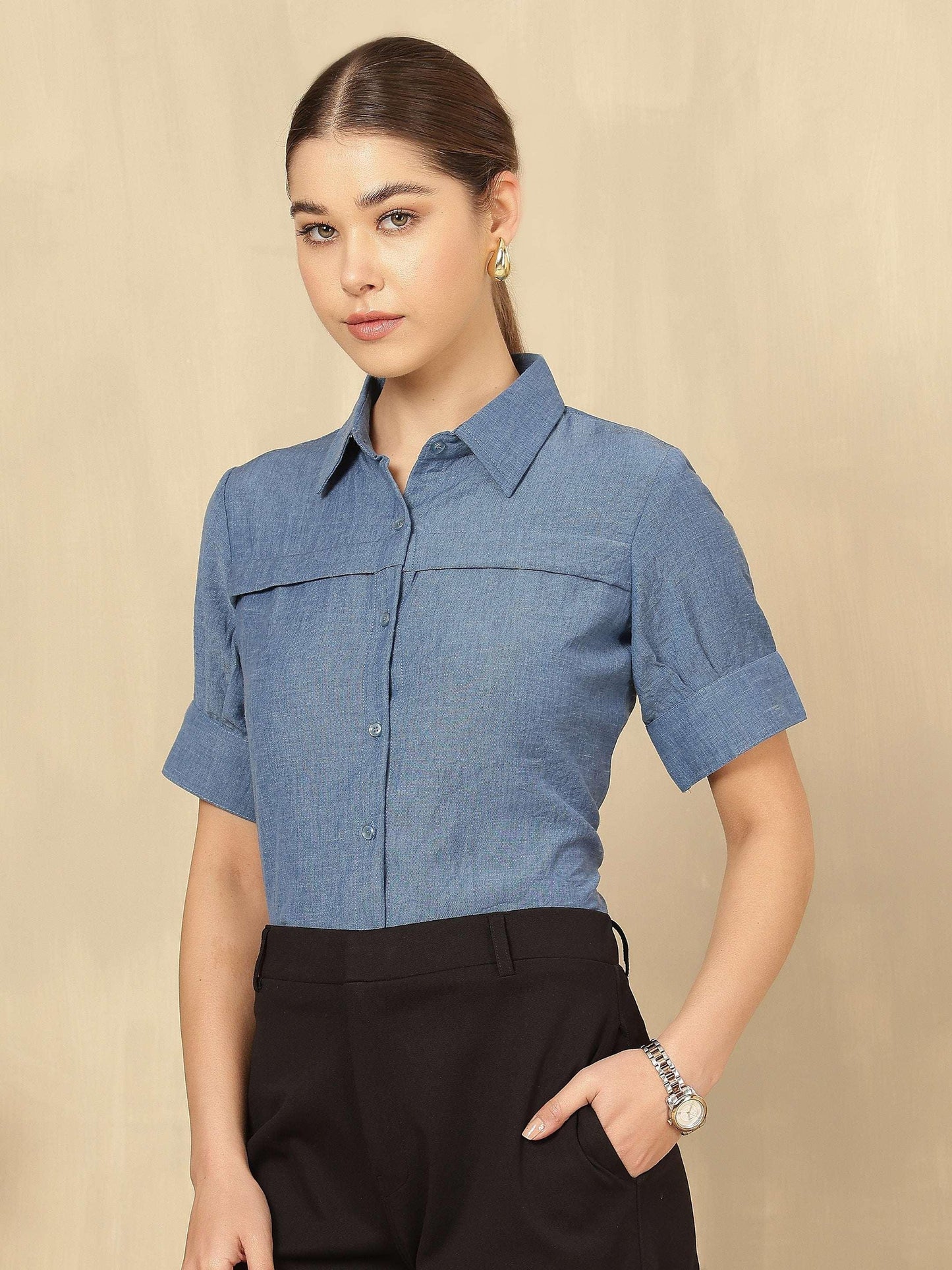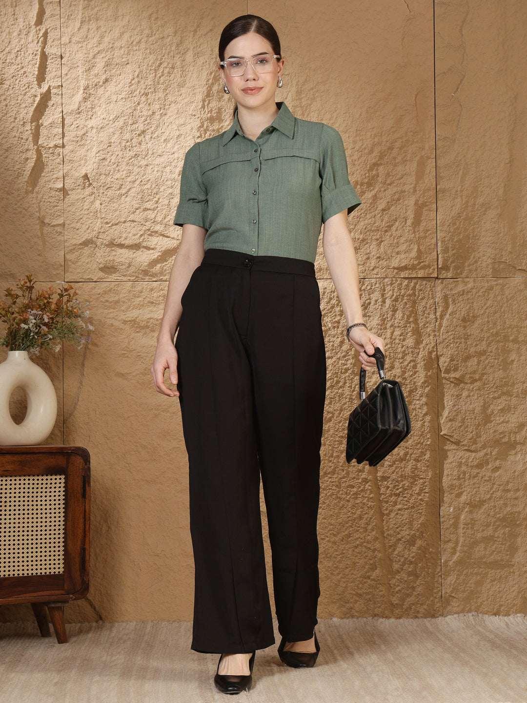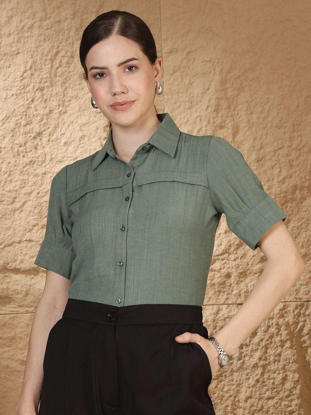 Women Solid formal Shirt with Short Sleeves
