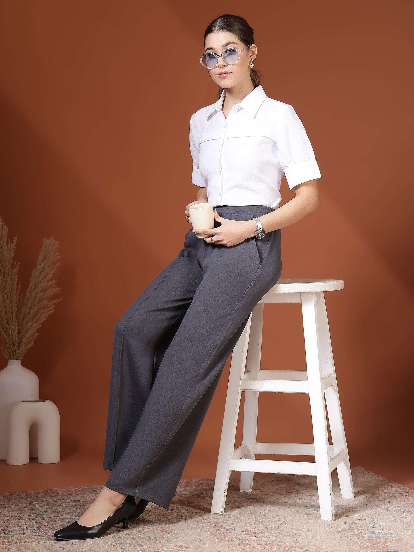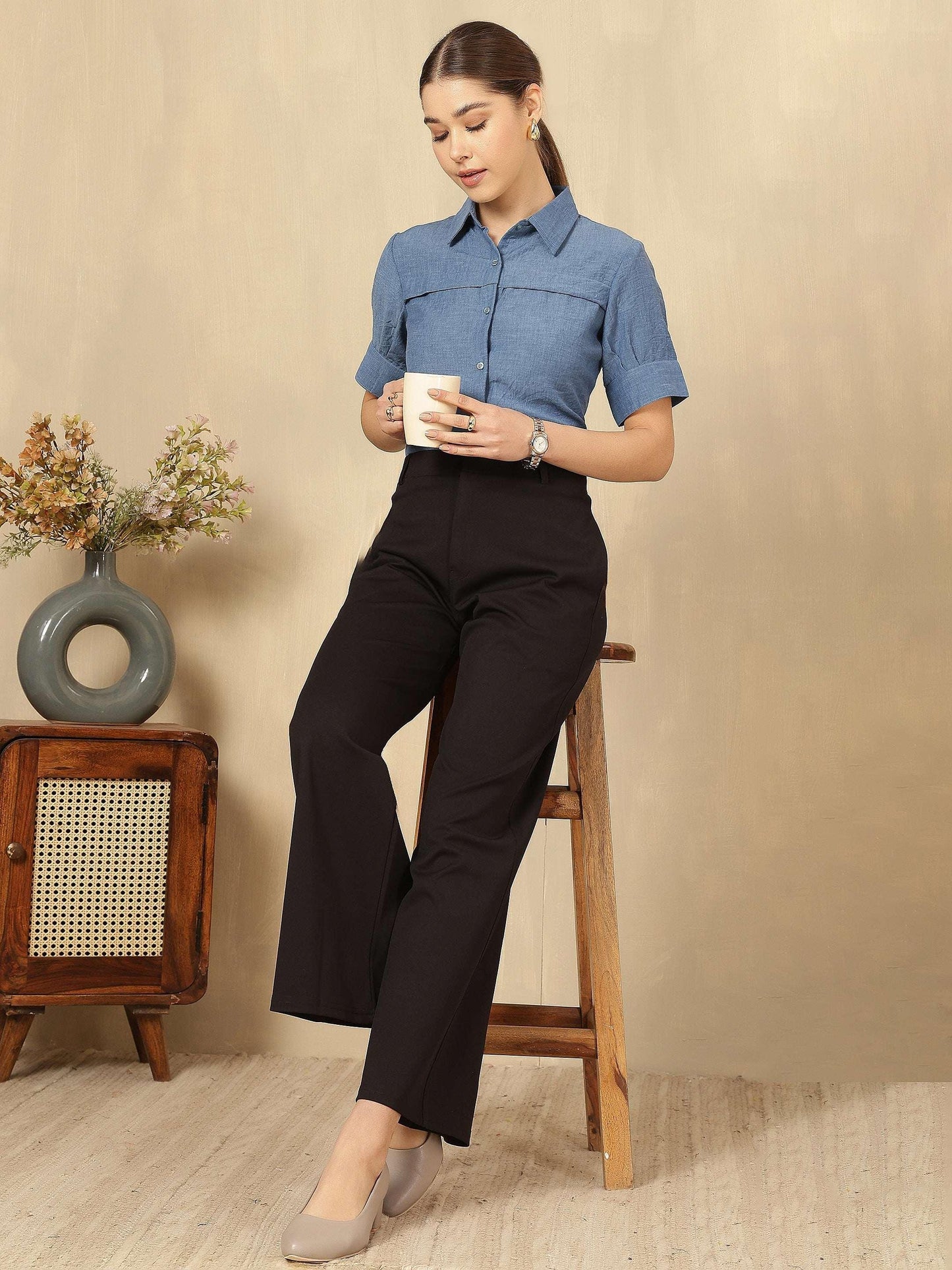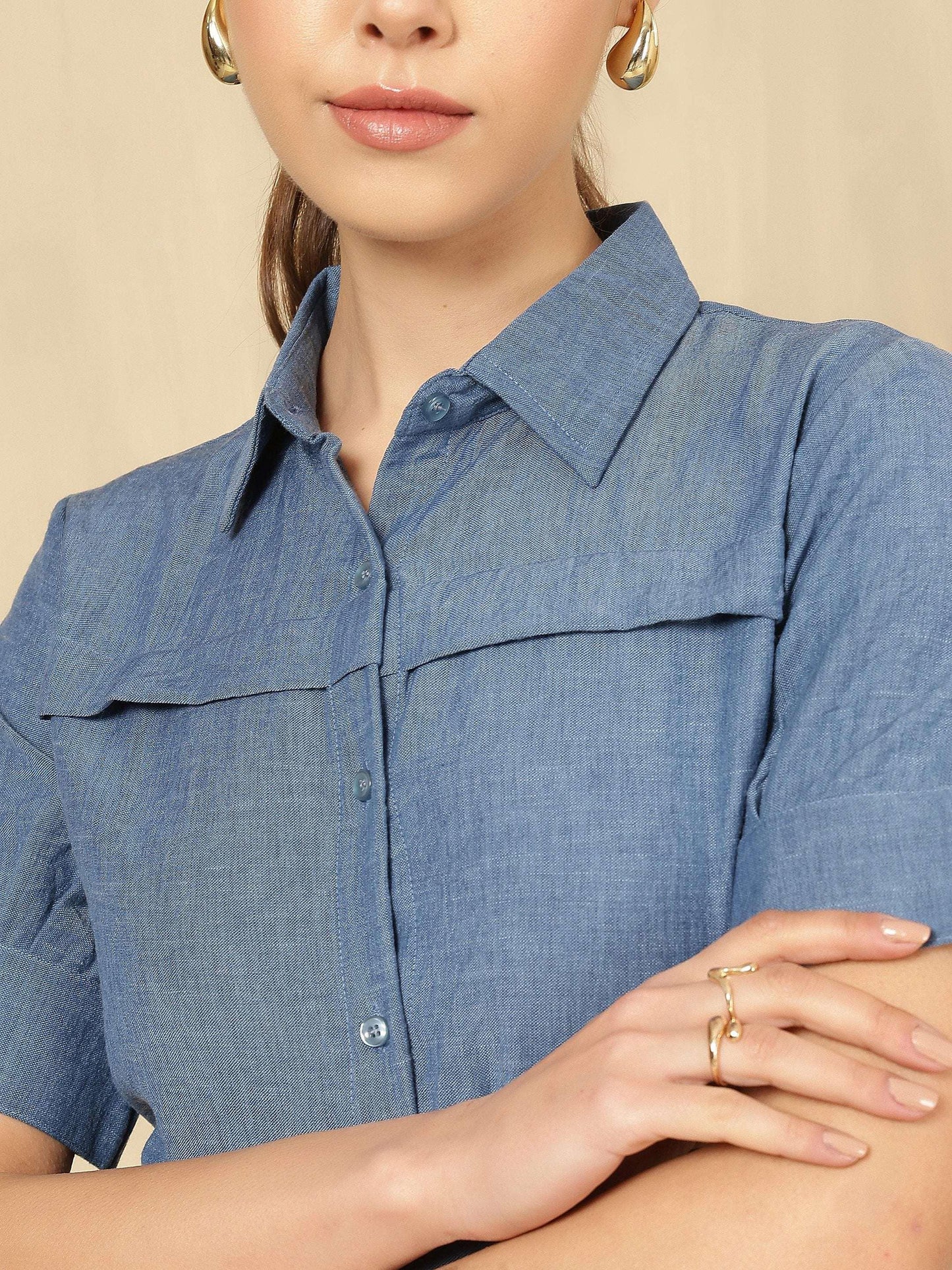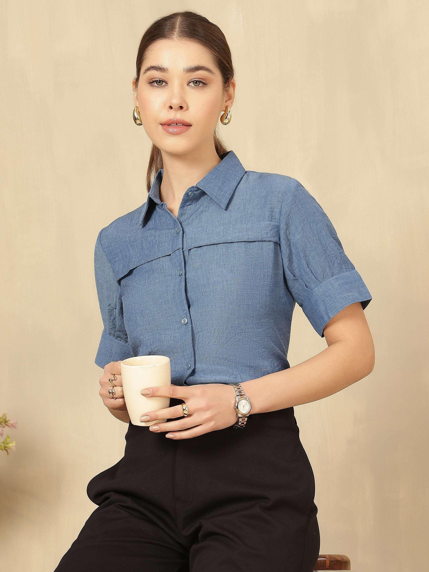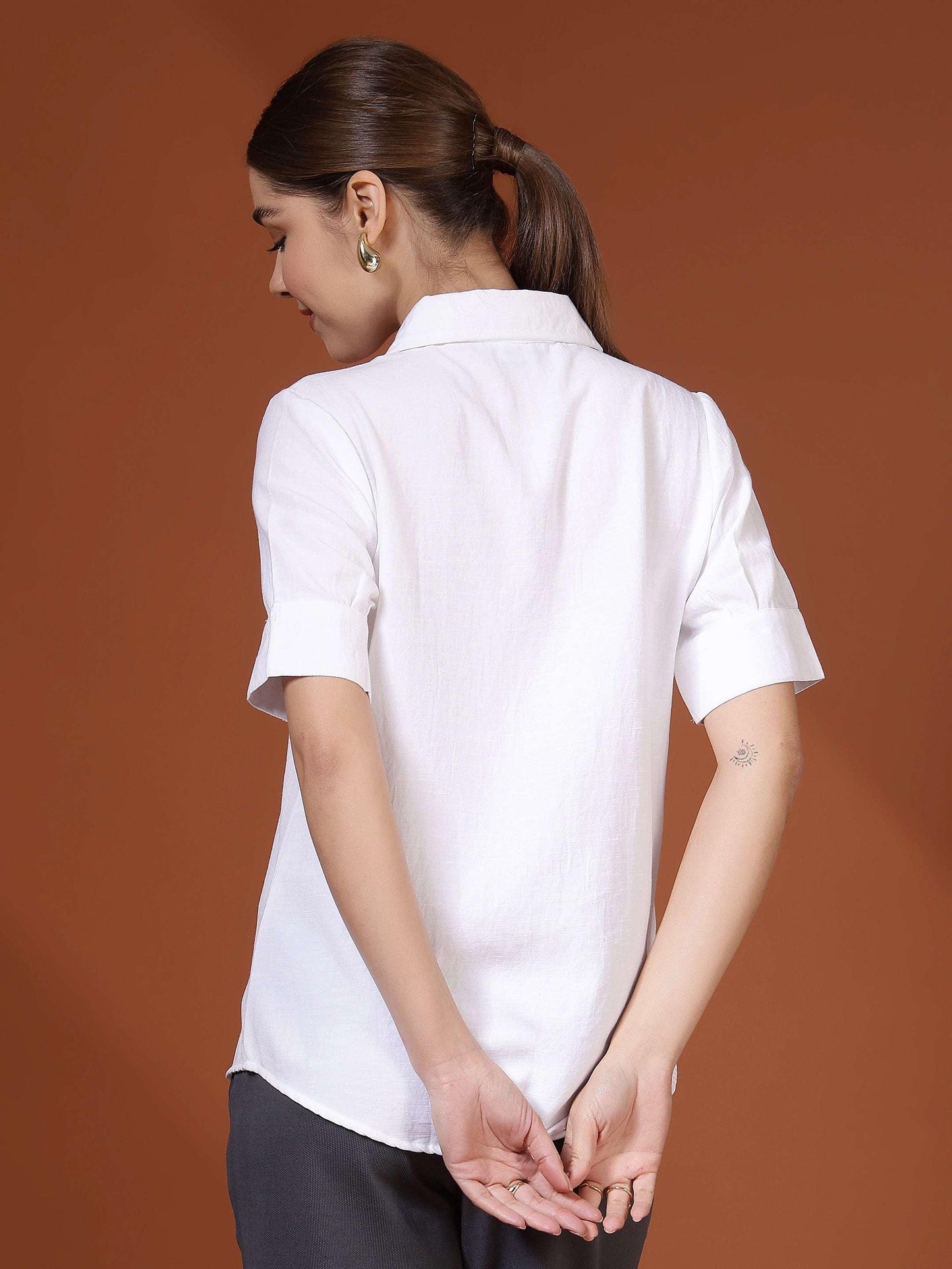 Women Solid formal Shirt with Short Sleeves