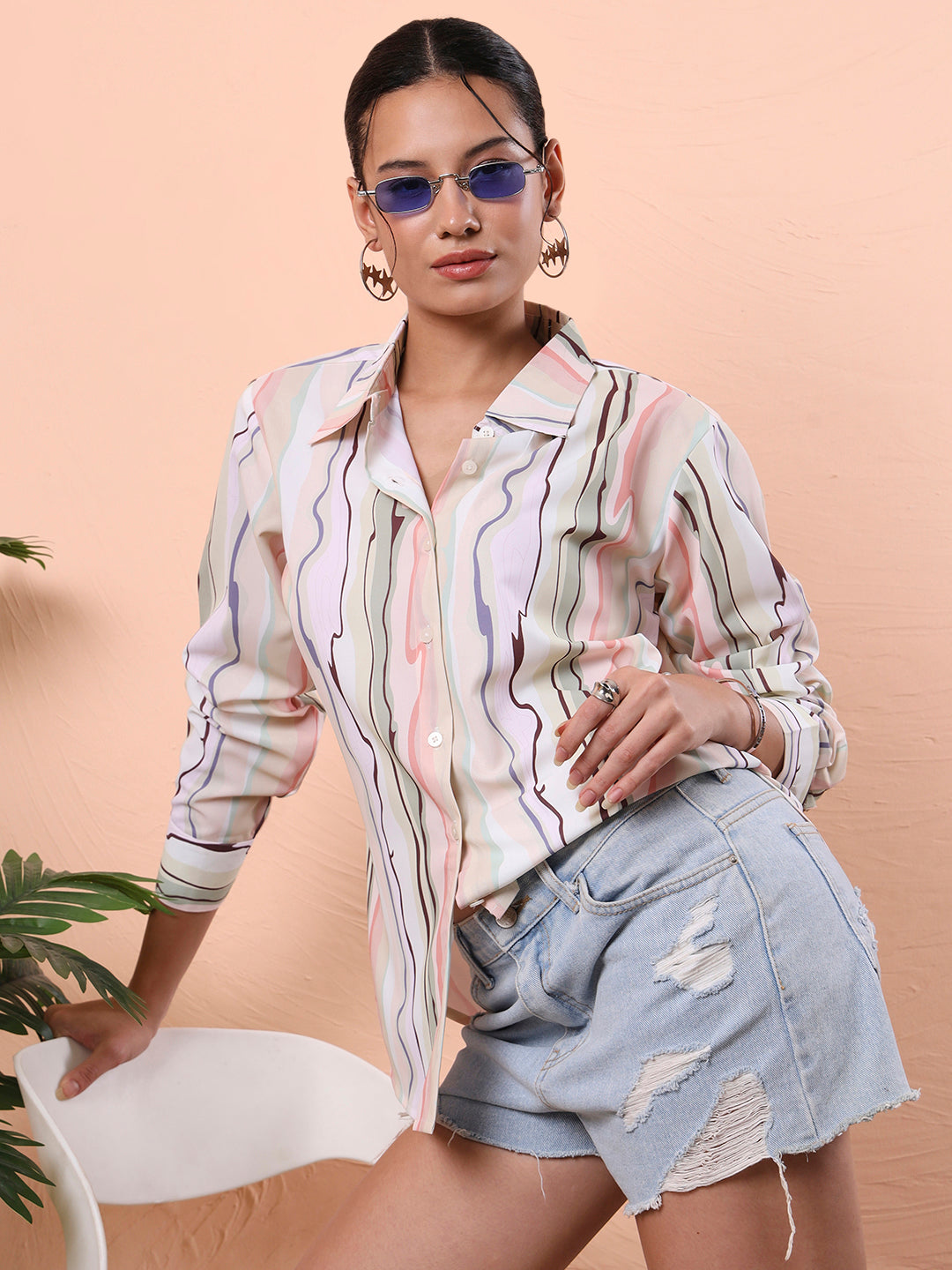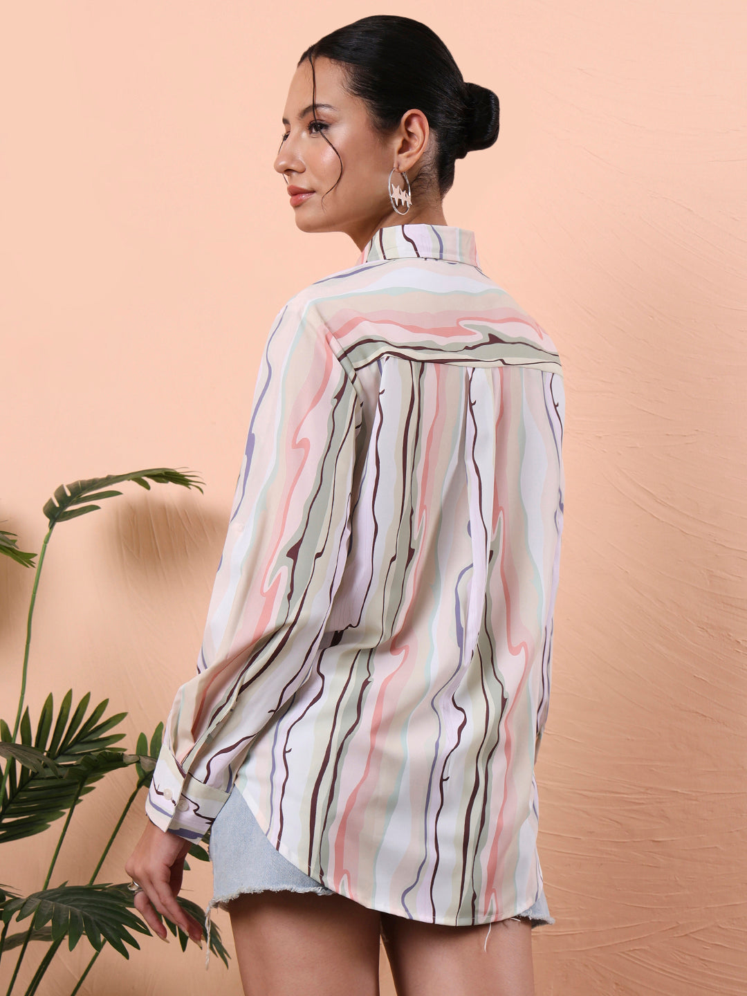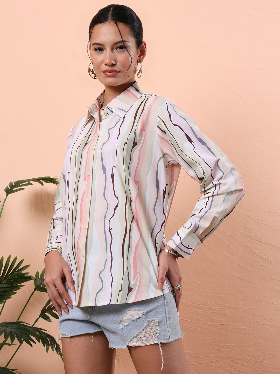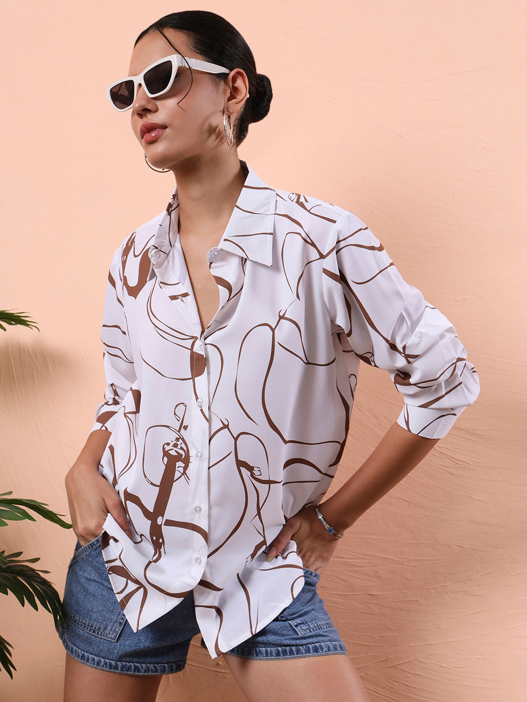 Step into effortless style and maximum comfort with our Flex Fit Oversized Relaxed Opaque Printed Casual Shirt for Women. Designed for the modern woman who values both fashion and function, this oversized printed shirt is your new wardrobe essential. Crafted from a breathable and soft cotton-blend fabric, it ensures all-day comfort, regardless of the season. The relaxed fit and opaque material make it ideal for layering or standalone wear, allowing you to express your unique style without compromising on ease. This long-sleeved oversized printed shirt for women features a bold abstract design that adds a statement to your everyday outfits. Whether you're stepping out for brunch, heading to a casual meeting, or looking for a stylish airport look, this shirt has you covered. The opaque fabric ensures full coverage, eliminating see-through worries and giving you the confidence to wear it without layering. The versatility of this shirt is unmatched; pair it with denim, leggings, or even shorts for a trendy off-duty look. Available in two attractive color options, classic White and a bold Multi, this shirt suits every mood and season. The premium-quality buttons, clean stitch lines, and stylish curved hem add to its overall premium feel. Designed for those who love oversized abstract shirts, printed cotton shirts, or simply want a go-to, relaxed, and casual shirt, this is a wardrobe essential that effortlessly blends fashion and functionality. Whether you’re updating your everyday wear or curating a new street style look, this oversized casual shirt for women deserves a top spot in your collection.
