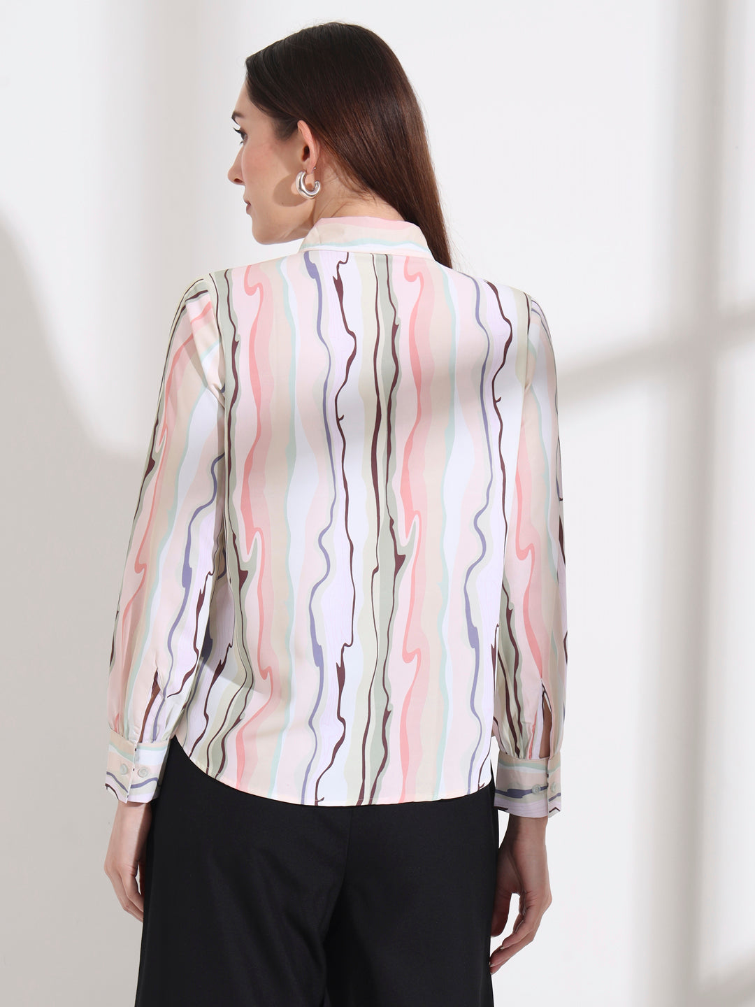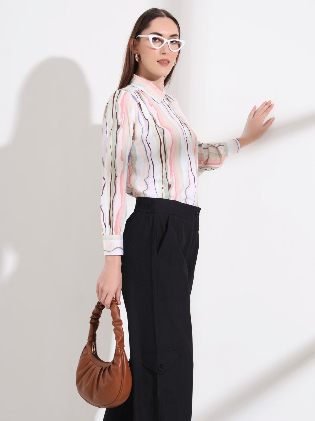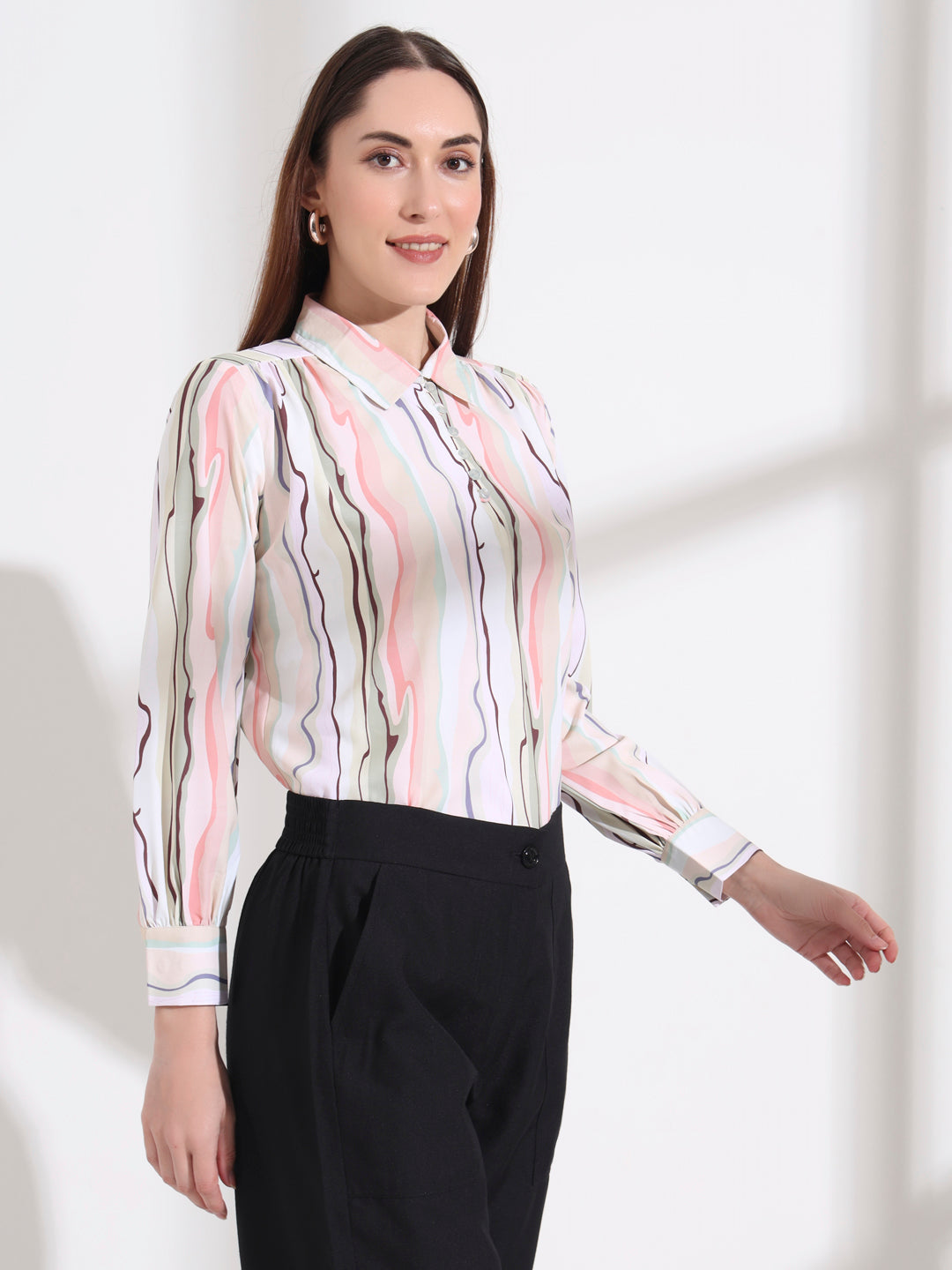 Enhance your professional style with the Women's Premium Spread Collar Printed Formal Shirt, a perfect blend of sophistication, comfort, and style. Designed for modern women, this cotton formal shirt offers an elegant yet professional look, making it an essential addition to your workwear collection. Made from high-quality cotton fabric, this striped formal shirt for women ensures breathability, softness, and all-day comfort. Whether heading to the office, attending a business meeting, or dressing up for a semi-formal event, this shirt delivers effortless elegance. The classic button-down collar provides a polished and structured appearance, ensuring you always look sharp and presentable. One of the standout features of this women’s formal wear shirt is its stylish puff sleeves, adding a touch of femininity and charm while maintaining a professional appeal. The multi-colored printed pattern enhances the versatility of this piece, allowing you to pair it effortlessly with trousers, skirts, or even denim for a smart casual look. Designed for practicality, this collar-neck formal shirt for women is easy to care for, with a wrinkle-resistant fabric that retains its shape and color after multiple washes. Whether you're dressing for work, an interview, or a corporate event, this women's spread shirt is a reliable choice for a confident and polished look. This women’s cotton formal shirt is available in a multi-color striped design, making it a must-have in every fashion-forward woman’s wardrobe. Experience the perfect combination of comfort, durability, and contemporary fashion with this premium-quality puff-sleeve formal shirt.