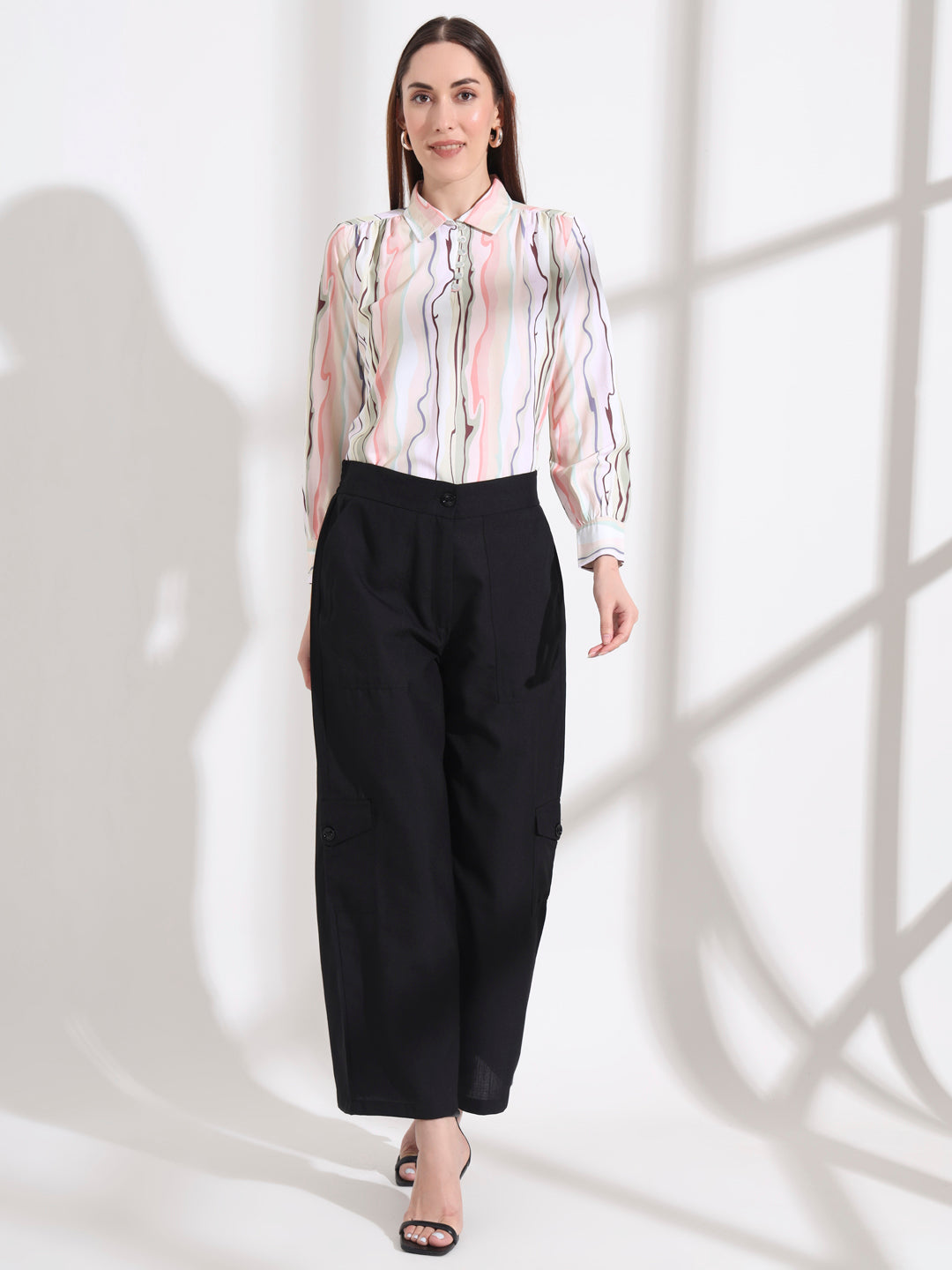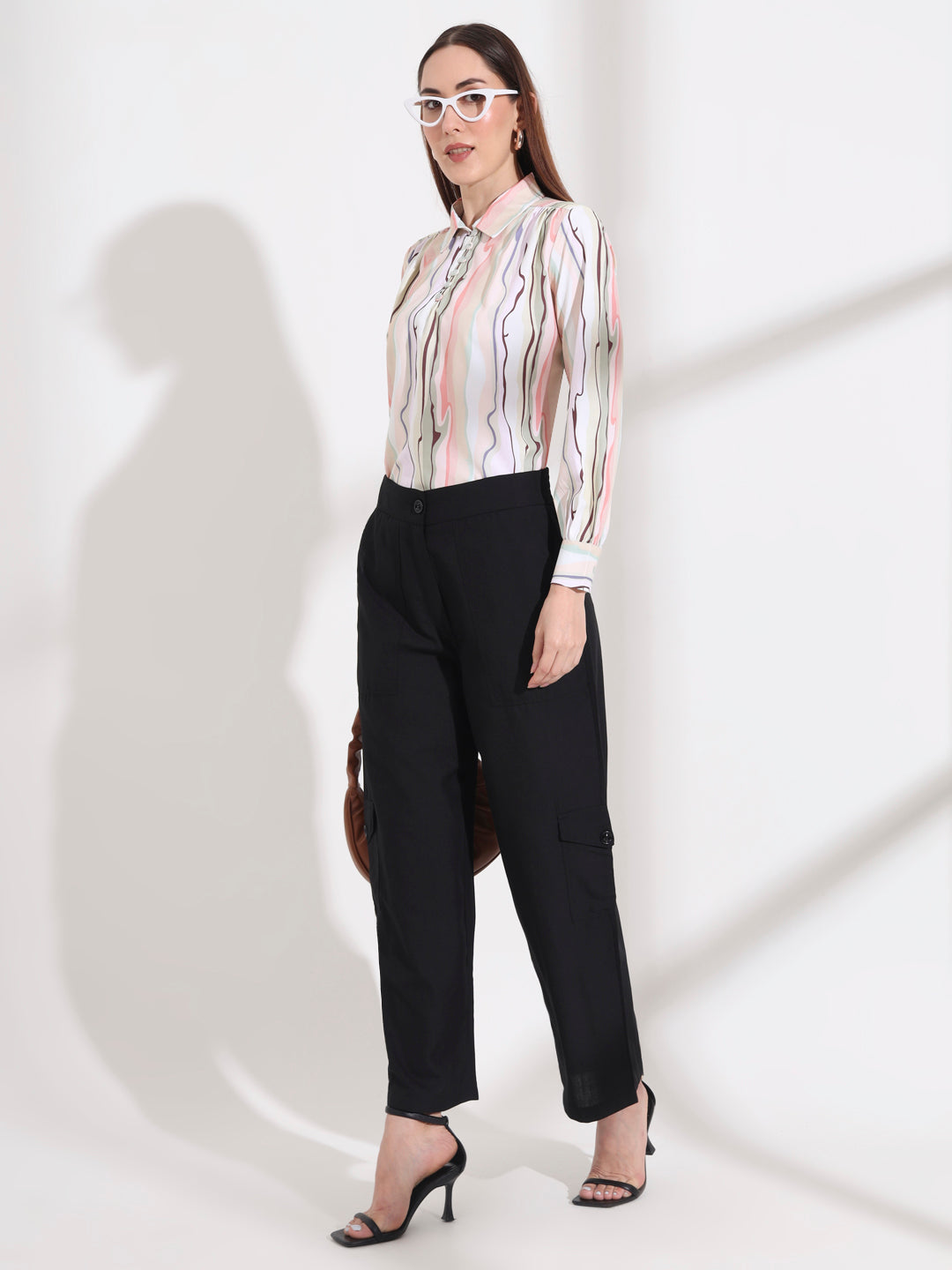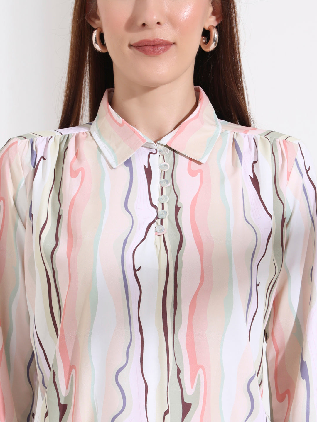 Enhance your professional style with the Women's Premium Spread Collar Printed Formal Shirt, a perfect blend of sophistication, comfort, and style. Designed for modern women, this cotton formal shirt offers an elegant yet professional look, making it an essential addition to your workwear collection. Made from high-quality cotton fabric, this striped formal shirt for women ensures breathability, softness, and all-day comfort. Whether heading to the office, attending a business meeting, or dressing up for a semi-formal event, this shirt delivers effortless elegance. The classic button-down collar provides a polished and structured appearance, ensuring you always look sharp and presentable. One of the standout features of this women’s formal wear shirt is its stylish puff sleeves, adding a touch of femininity and charm while maintaining a professional appeal. The multi-colored printed pattern enhances the versatility of this piece, allowing you to pair it effortlessly with trousers, skirts, or even denim for a smart casual look. Designed for practicality, this collar-neck formal shirt for women is easy to care for, with a wrinkle-resistant fabric that retains its shape and color after multiple washes. Whether you're dressing for work, an interview, or a corporate event, this women's spread shirt is a reliable choice for a confident and polished look. This women’s cotton formal shirt is available in a multi-color striped design, making it a must-have in every fashion-forward woman’s wardrobe. Experience the perfect combination of comfort, durability, and contemporary fashion with this premium-quality puff-sleeve formal shirt.