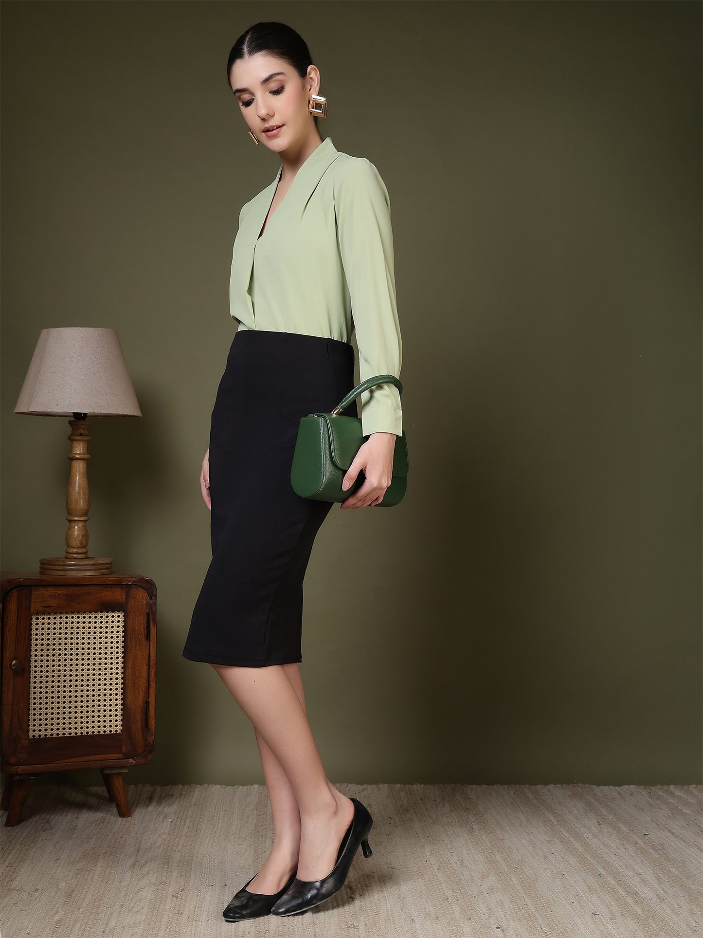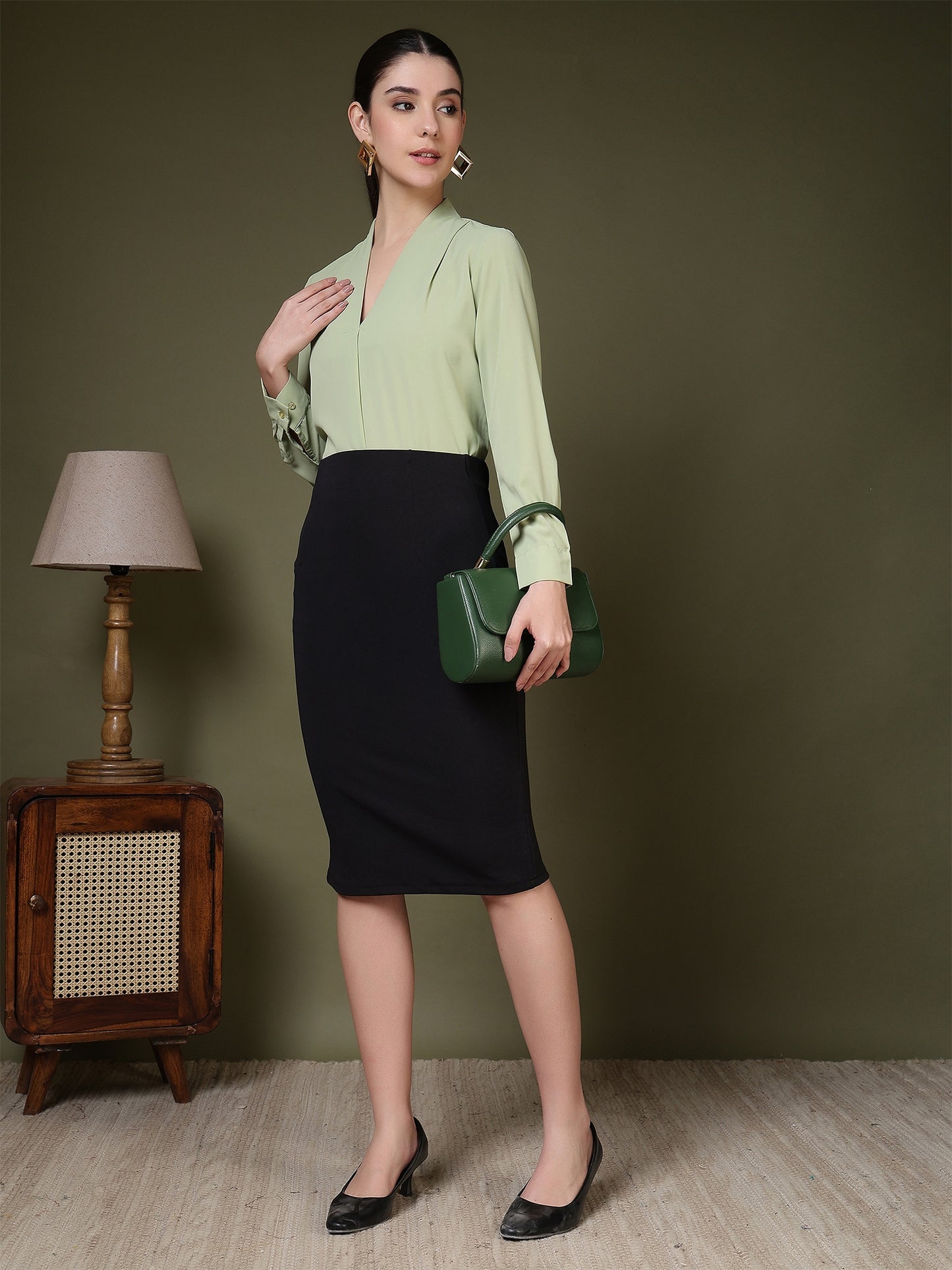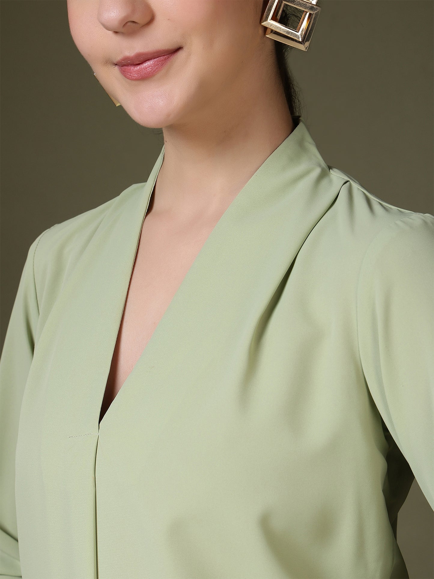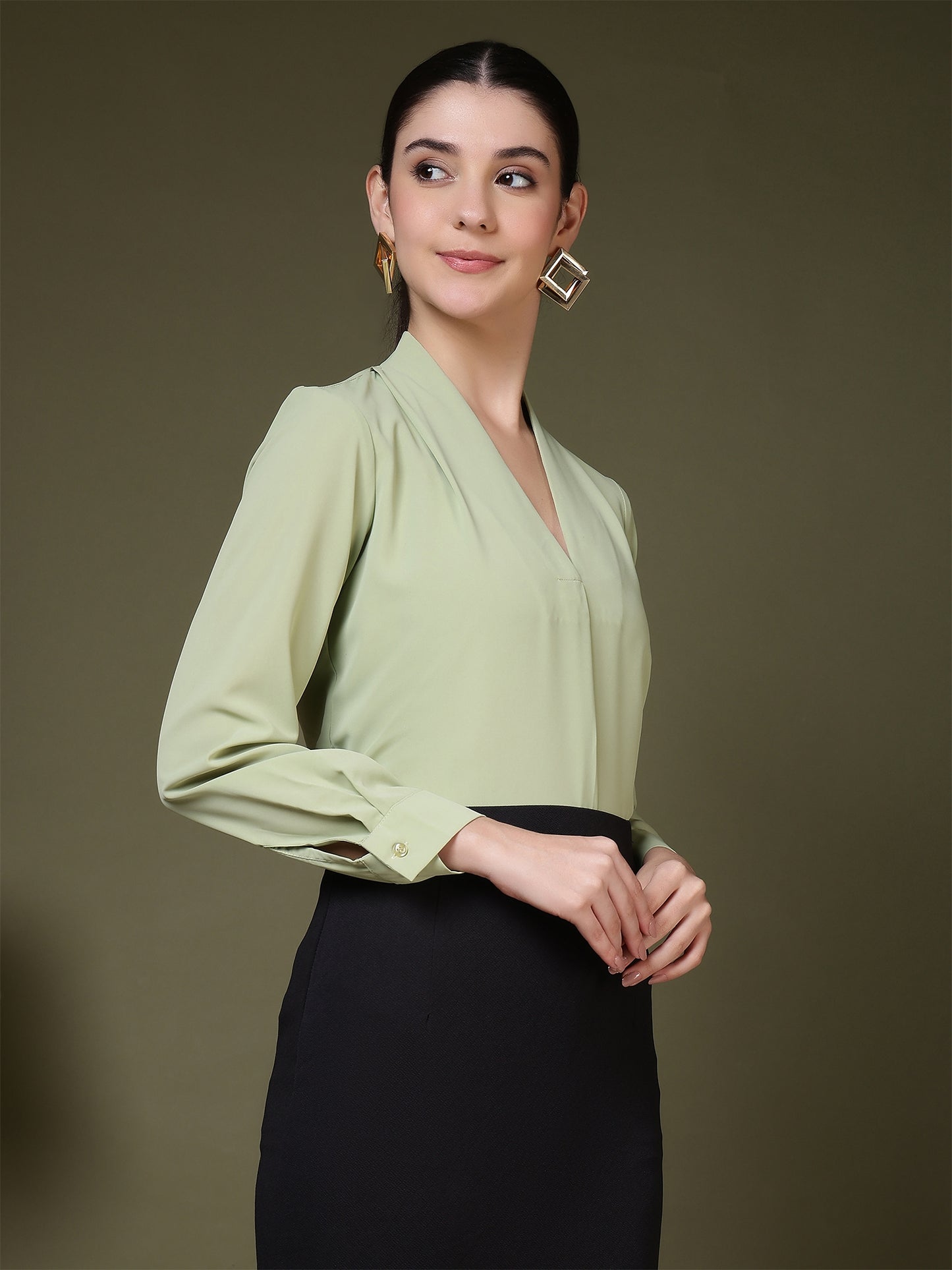 Women’s V-Neck Pleated Long Sleeve Elegant Office Wear & Everyday Casual Top