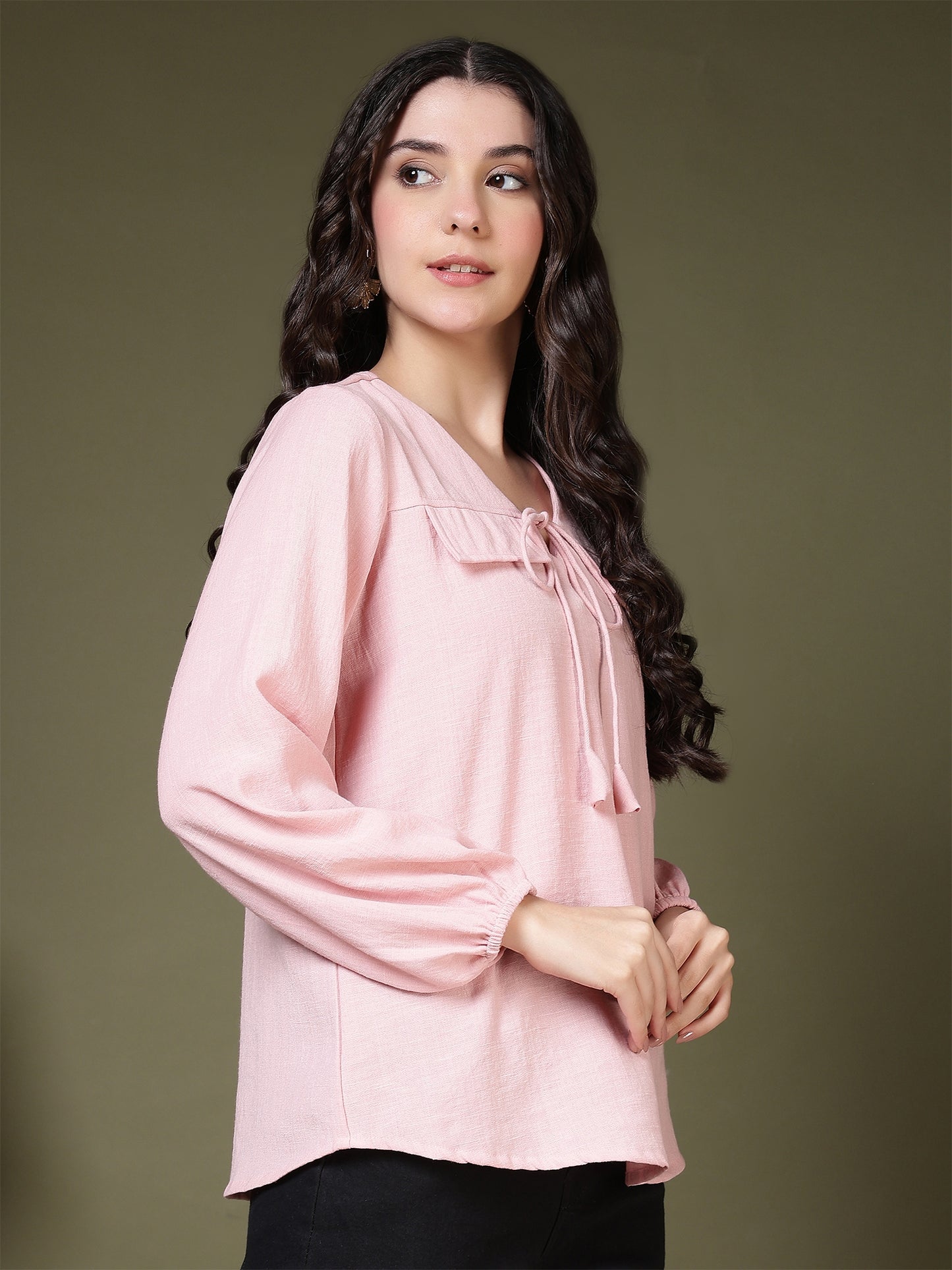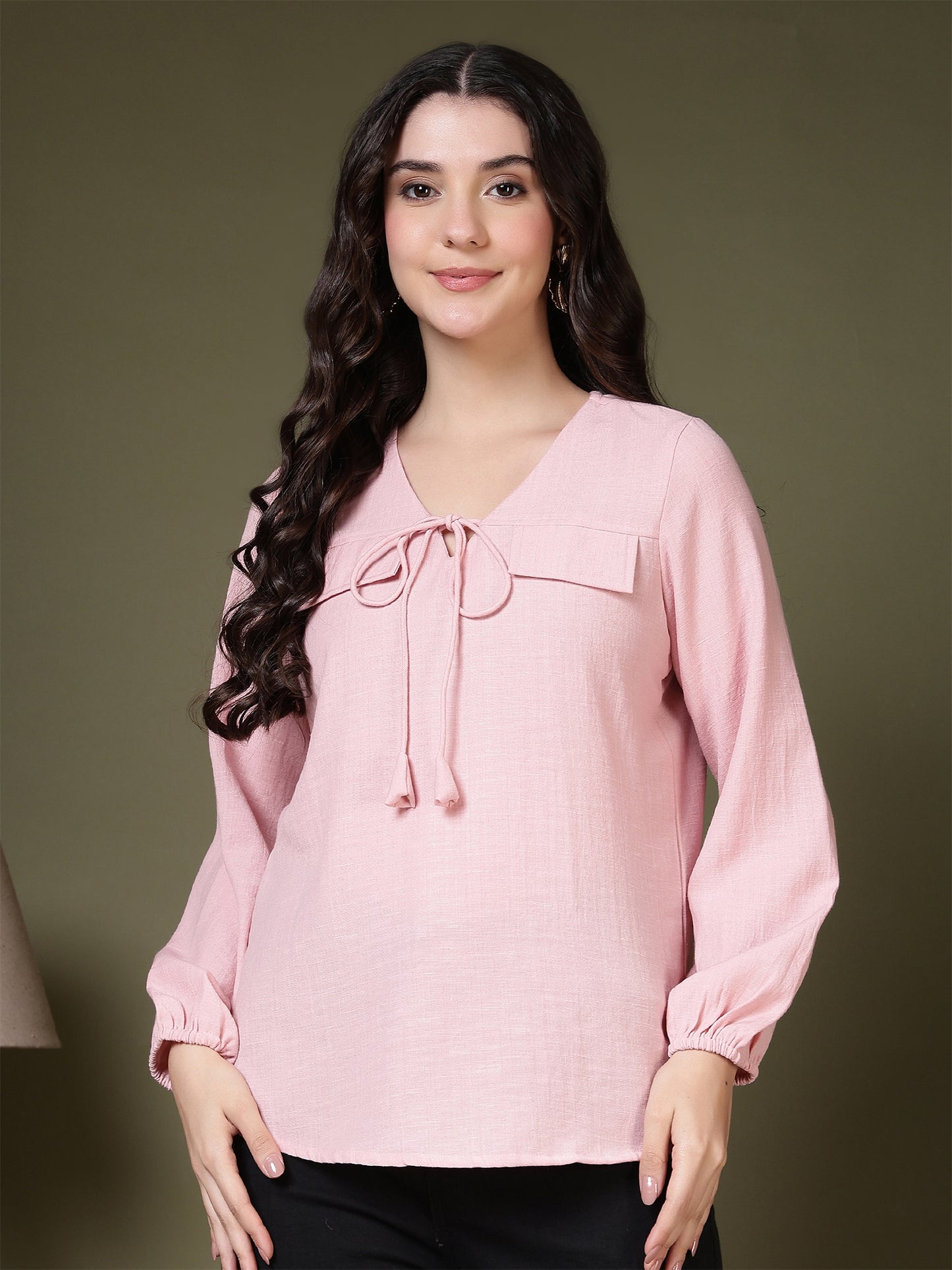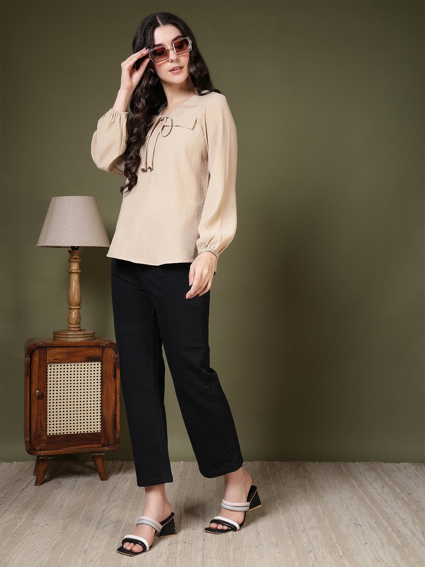 Women Tie-Neck Long Sleeve Casual Top for Office & Daily Wear