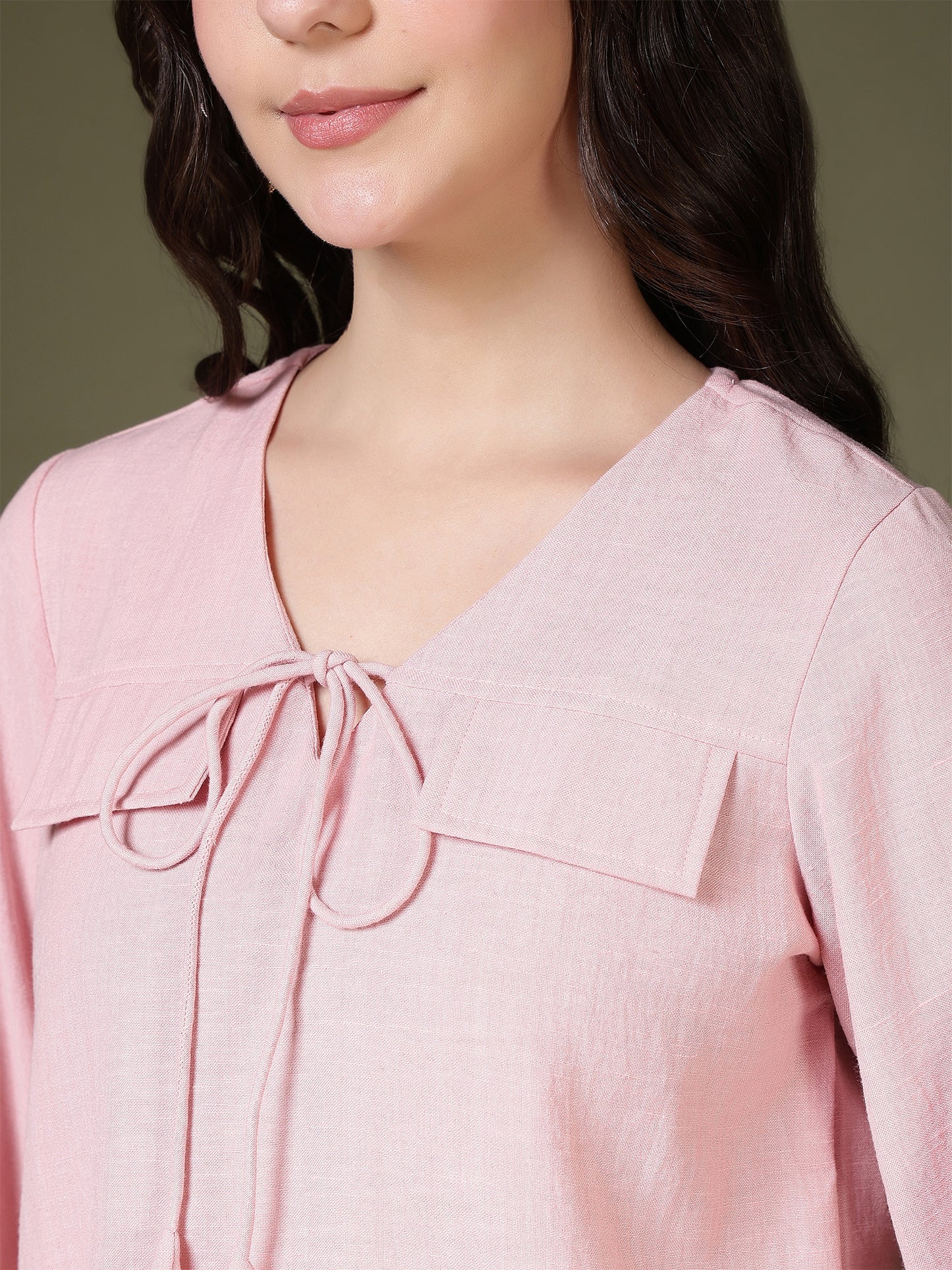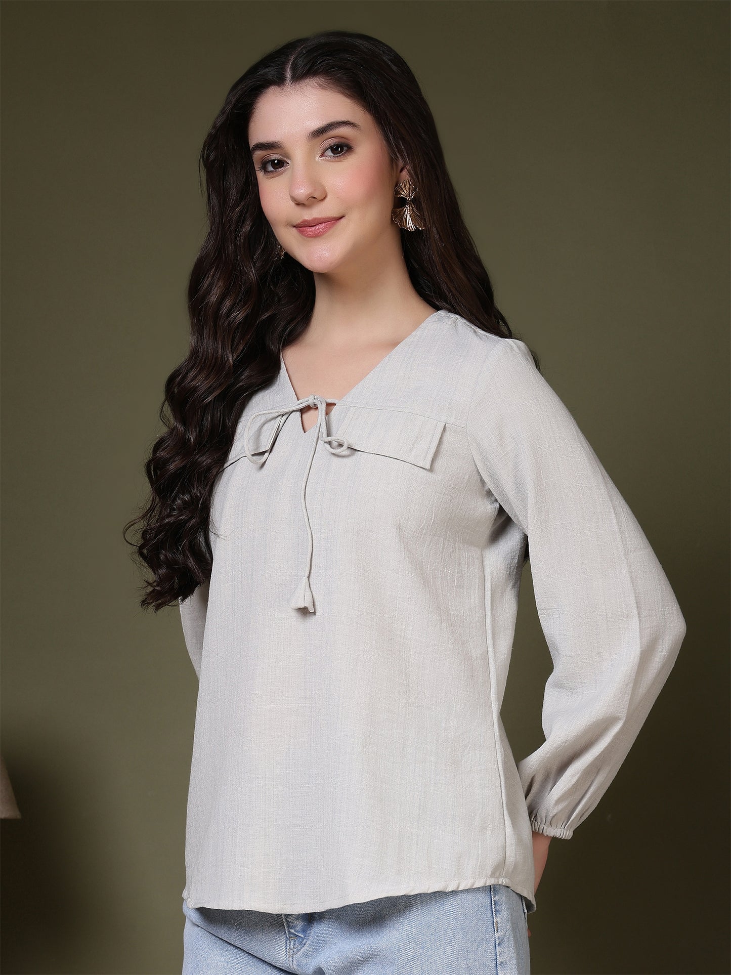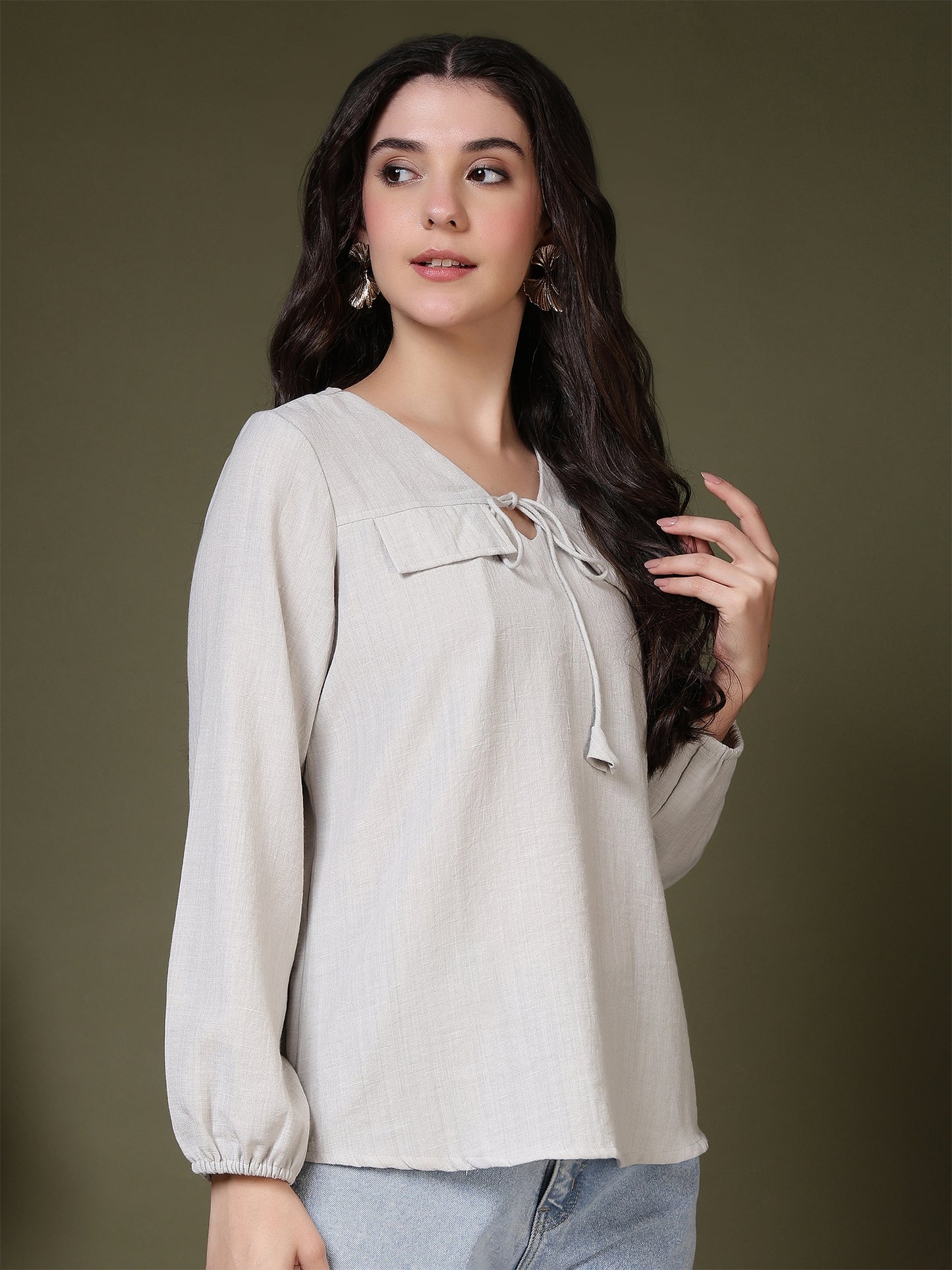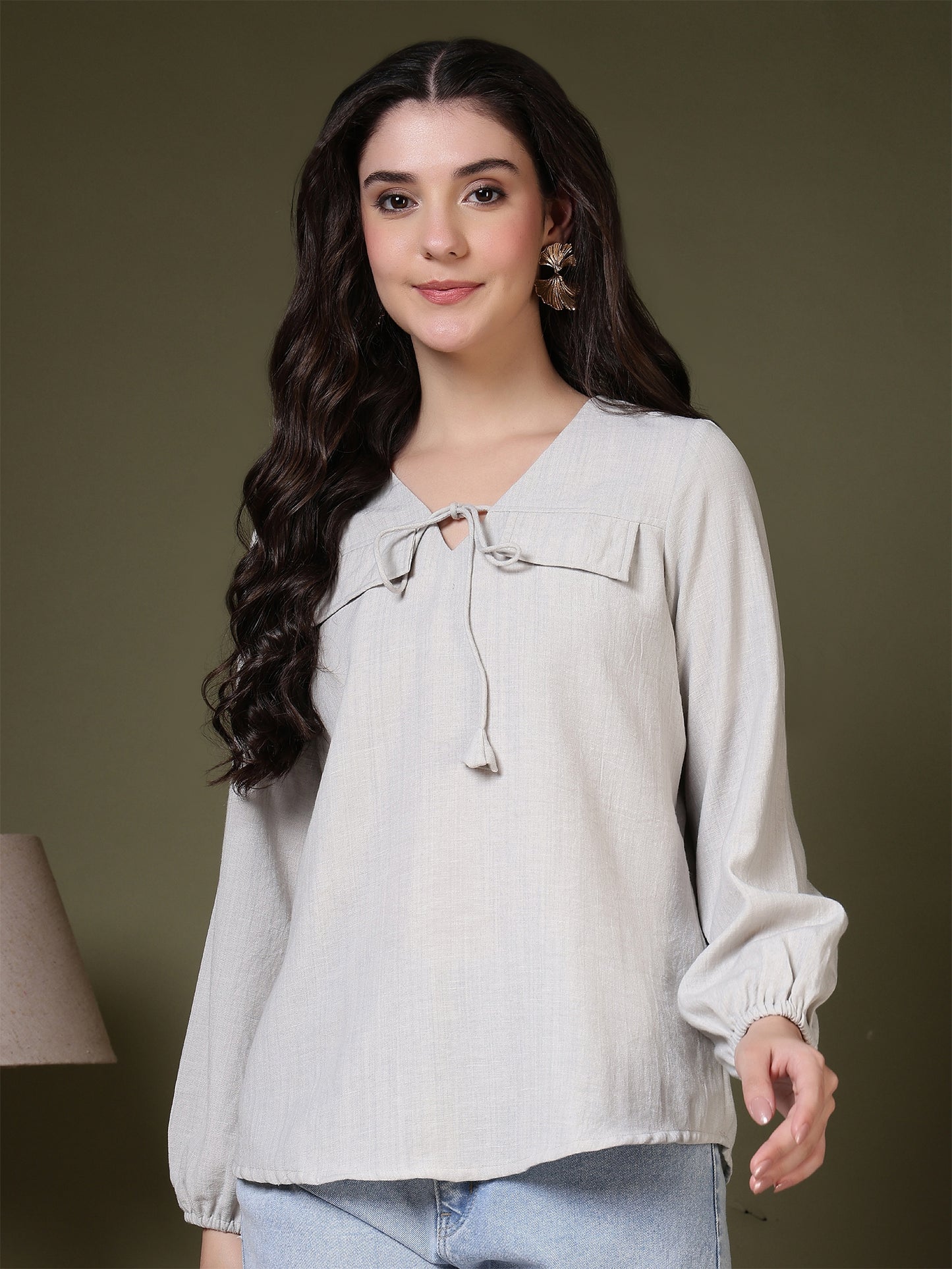 Women Tie-Neck Long Sleeve Casual Top for Office & Daily Wear