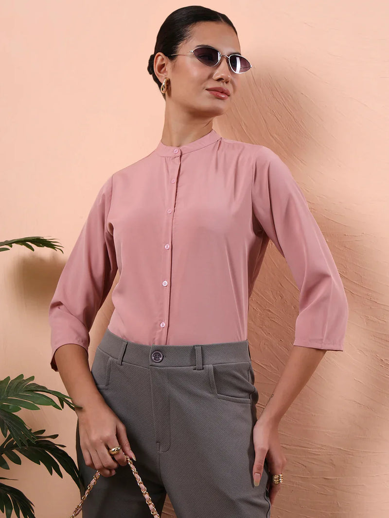 Women’s Regular Fit Mandarin Collar Office Wear Shirt