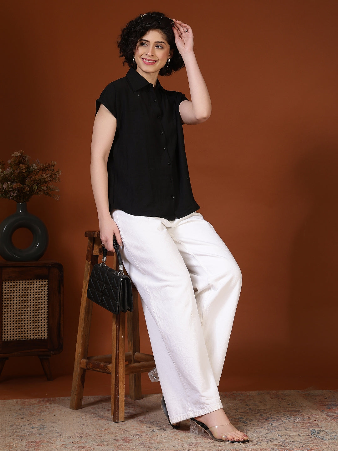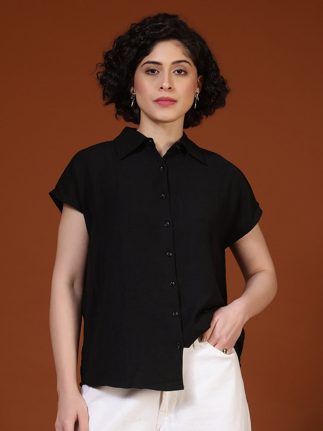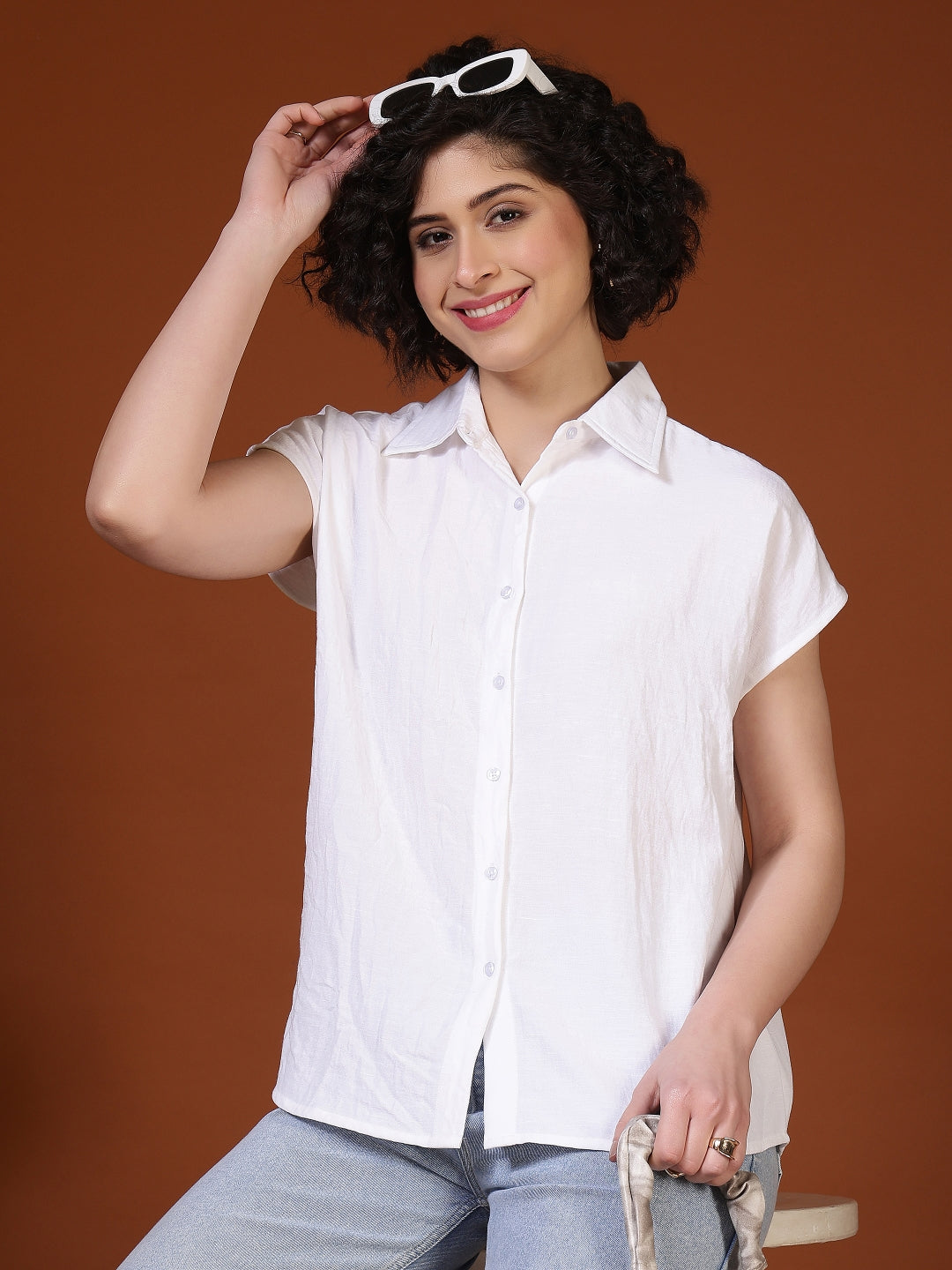 Regular price Rs. 649.00This women’s casual shirt features a classic collared neckline with a clean button-down front, offering a smart yet relaxed look suitable for everyday wear. Designed with short sleeves and a comfortable regular fit, it allows ease of movement while maintaining a polished appearance. The lightweight woven fabric feels soft on the skin and is ideal for all-day comfort. Subtle all-over micro motifs add a touch of style without overpowering the design, making it easy to pair with jeans, trousers, or skirts. Perfect for casual outings, office wear, or semi-formal occasions, this versatile shirt blends comfort, simplicity, and modern elegance.