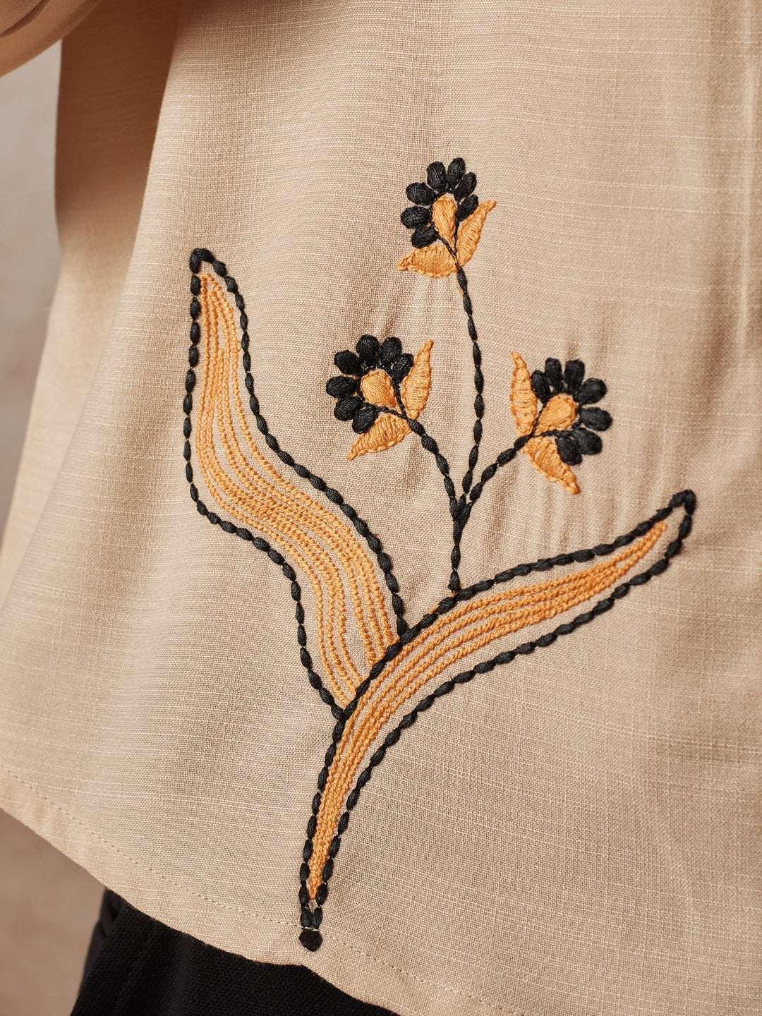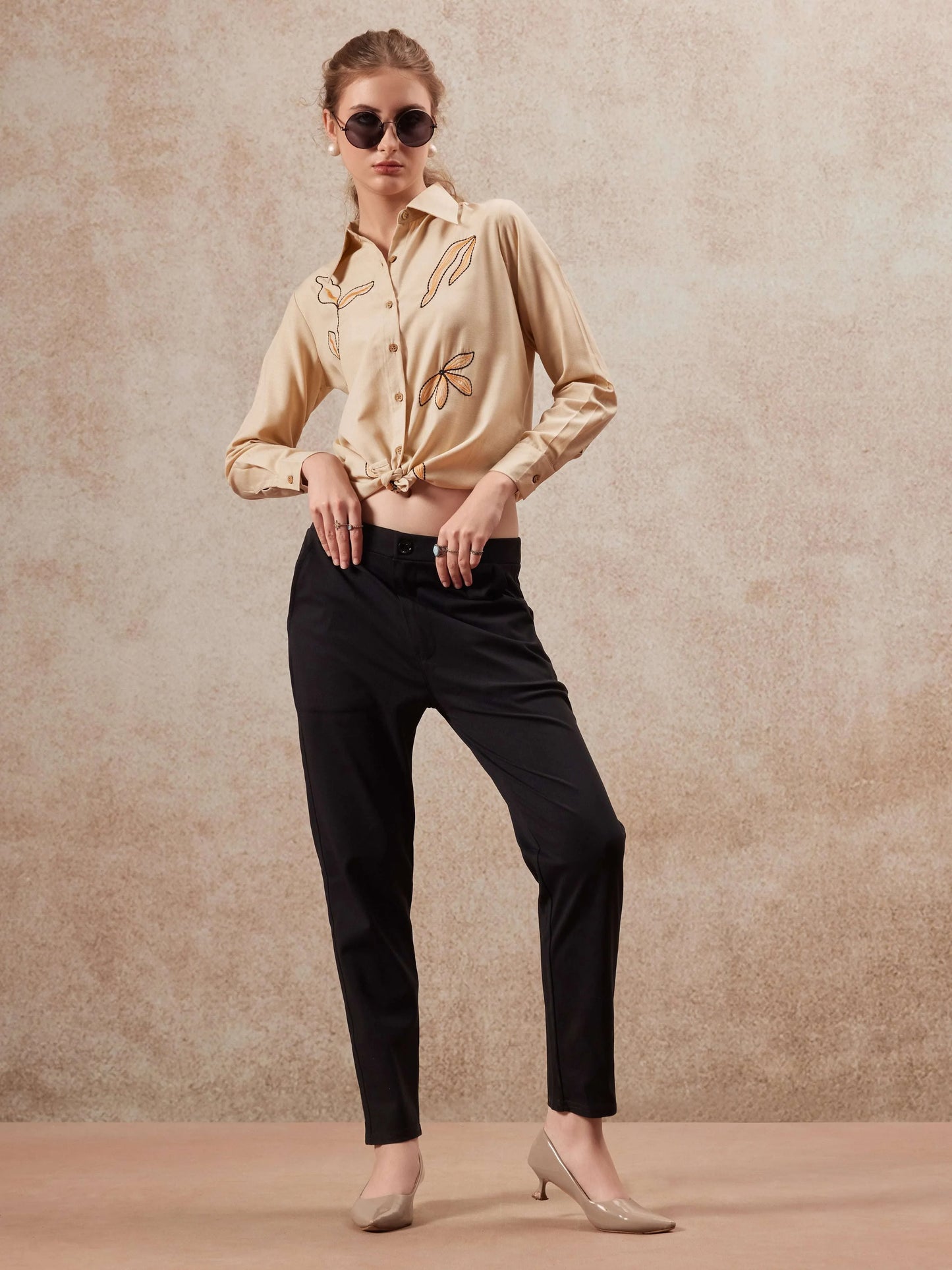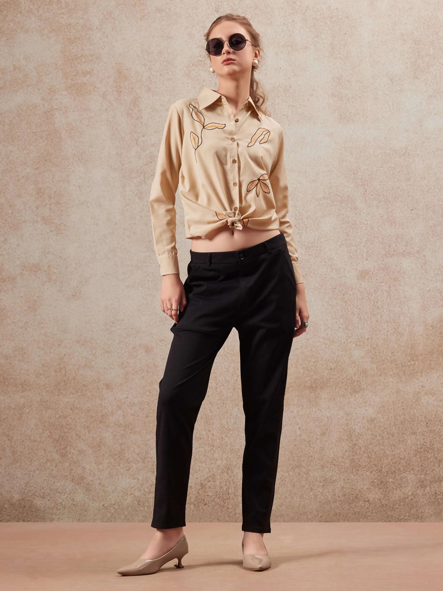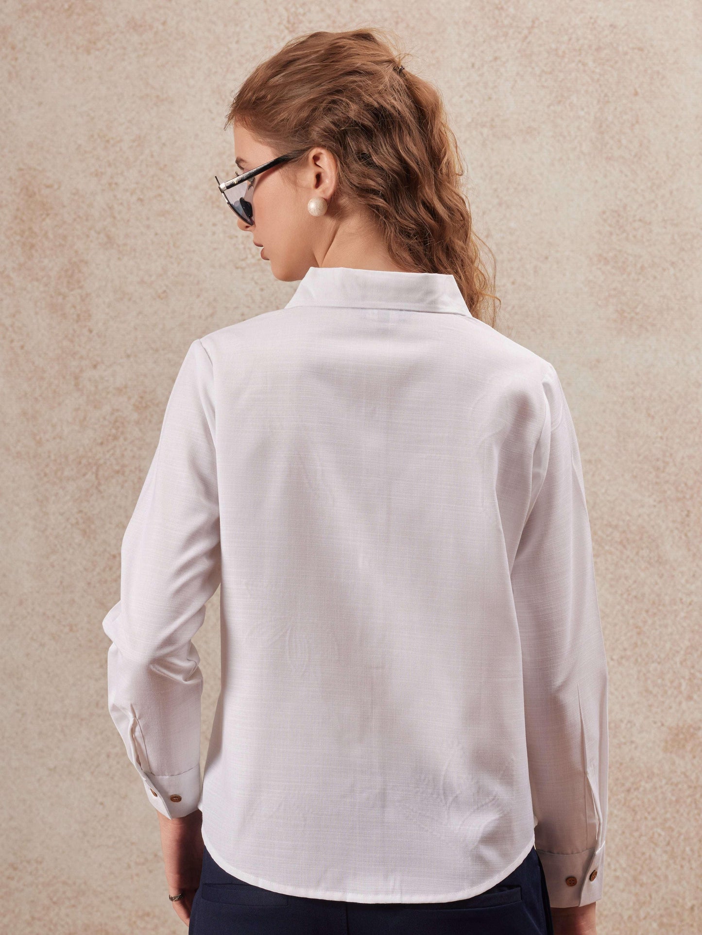 This women’s embroidered shirt is thoughtfully designed to blend everyday comfort with refined style, making it a versatile addition to your wardrobe. Crafted from soft, breathable fabric, it offers a smooth feel against the skin while ensuring all-day ease. The classic collared neckline and full button-down front create a timeless silhouette that works effortlessly for both casual and semi-formal settings. Delicate embroidery details placed across the front add an elegant, handcrafted touch, enhancing the overall look without appearing overpowering. The full-length sleeves with structured cuffs provide a polished finish, while the regular fit allows comfortable movement and a flattering drape on different body types. Easy to style, this shirt pairs beautifully with trousers, skirts, or denim, making it suitable for office wear, casual outings, or smart everyday dressing. Designed for women who appreciate subtle detailing and versatile fashion, this embroidered shirt delivers a perfect balance of sophistication, comfort, and modern appeal.