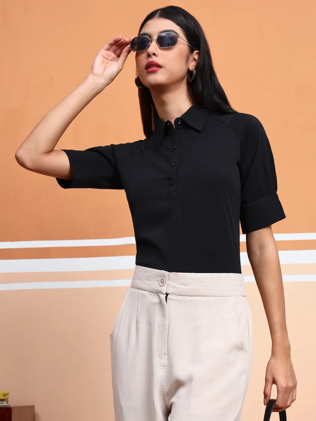 Regular price Rs. 799.00Elevate your office attire with our FITHUB Office Wear Formal Top for Women. Crafted for both style and comfort, this top exudes professionalism and sophistication. Tailored to perfection, it seamlessly transitions from boardroom meetings to after-work engagements. The impeccable design and quality fabric ensure a polished look that lasts all day. Whether paired with trousers or skirts, this versatile top adds a touch of elegance to any ensemble. Embrace confidence and style effortlessly with our FITHUB Office Wear Formal Top for Women.