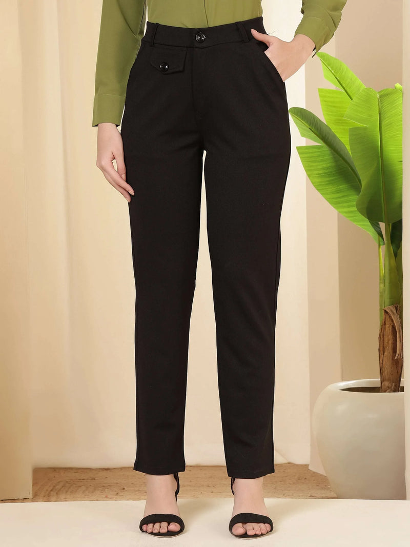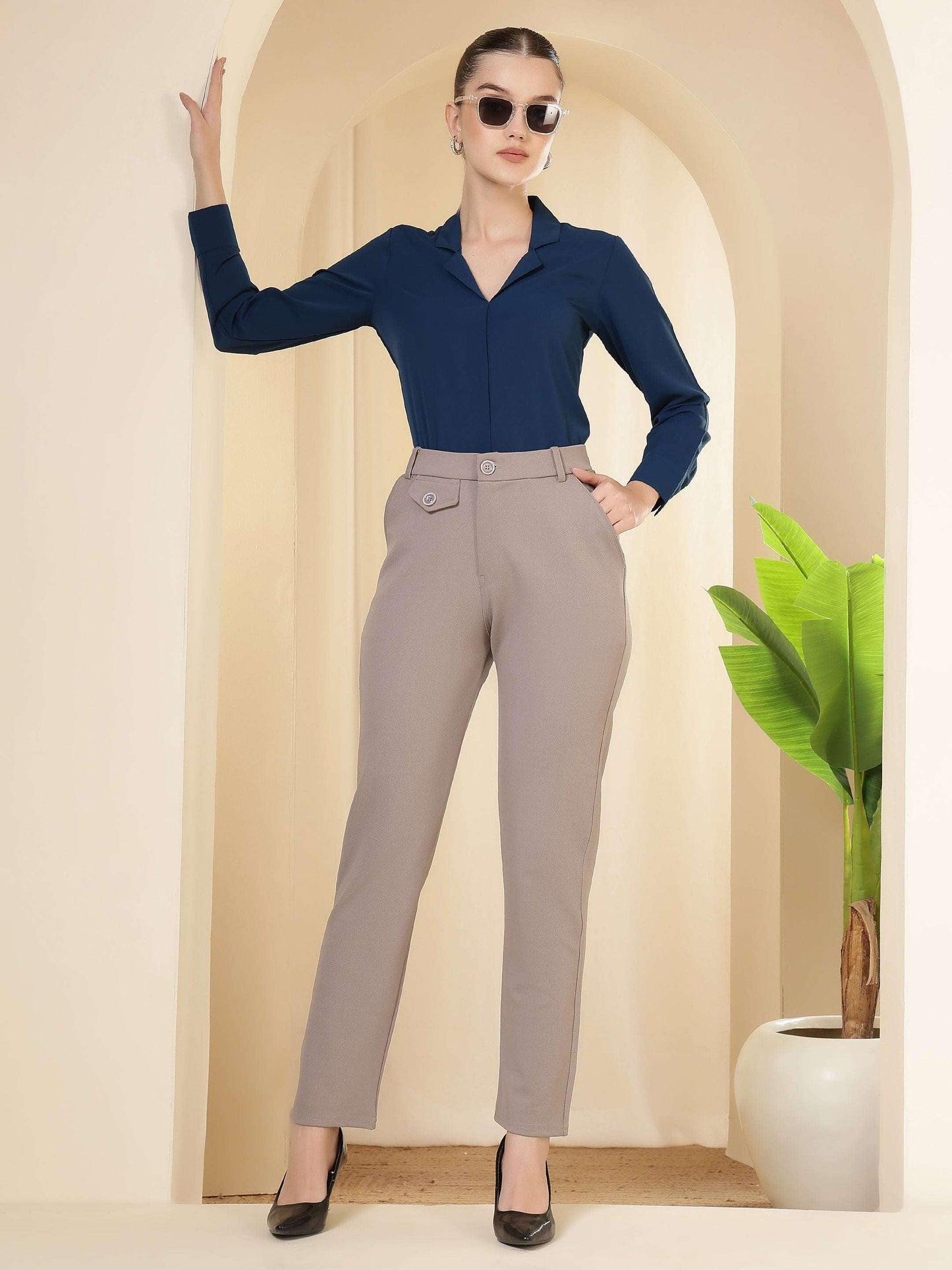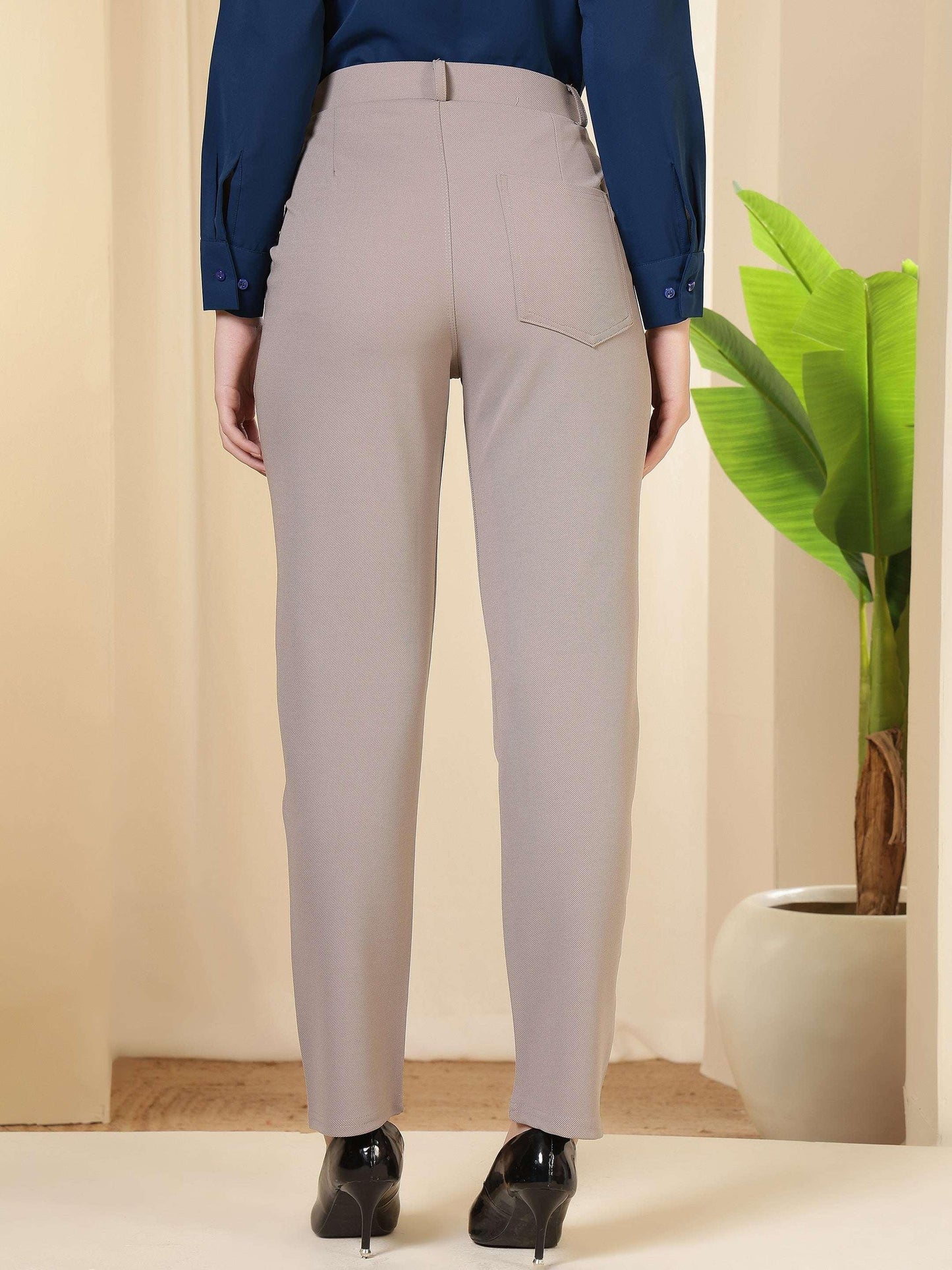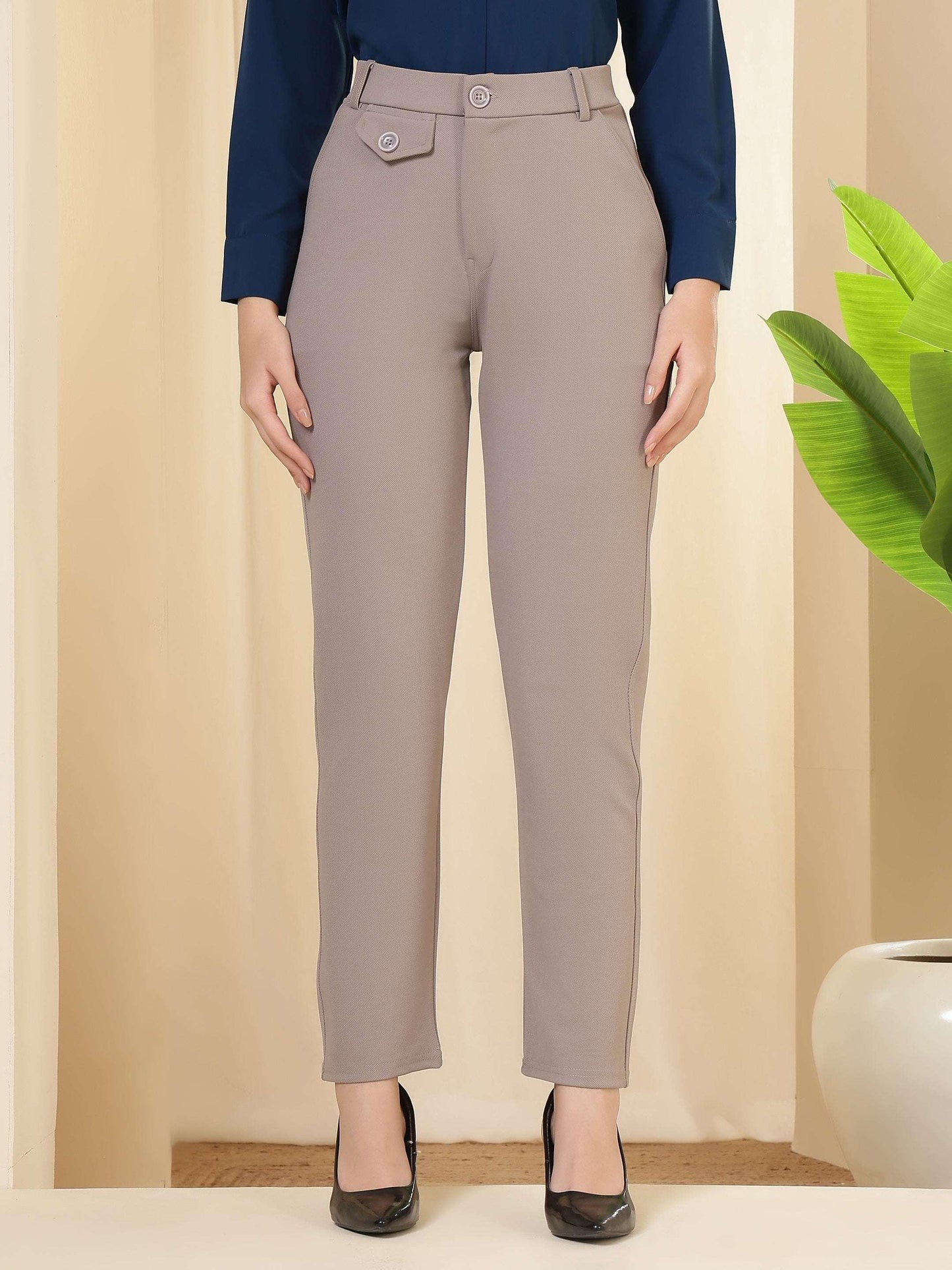 Regular price Rs. 699.00These trousers feature a tailored, streamlined silhouette with a structured waistband and clean front, giving them a polished and professional appeal. Designed to sit comfortably at the waist, they offer a refined fit through the hips and legs while maintaining ease of movement. The minimal detailing and neat finish enhance their formal character, making them a versatile choice for office wear, business meetings, and smart occasions. Pair them with shirts, blouses, or blazers for a sophisticated and confident look suitable for a modern work wardrobe.