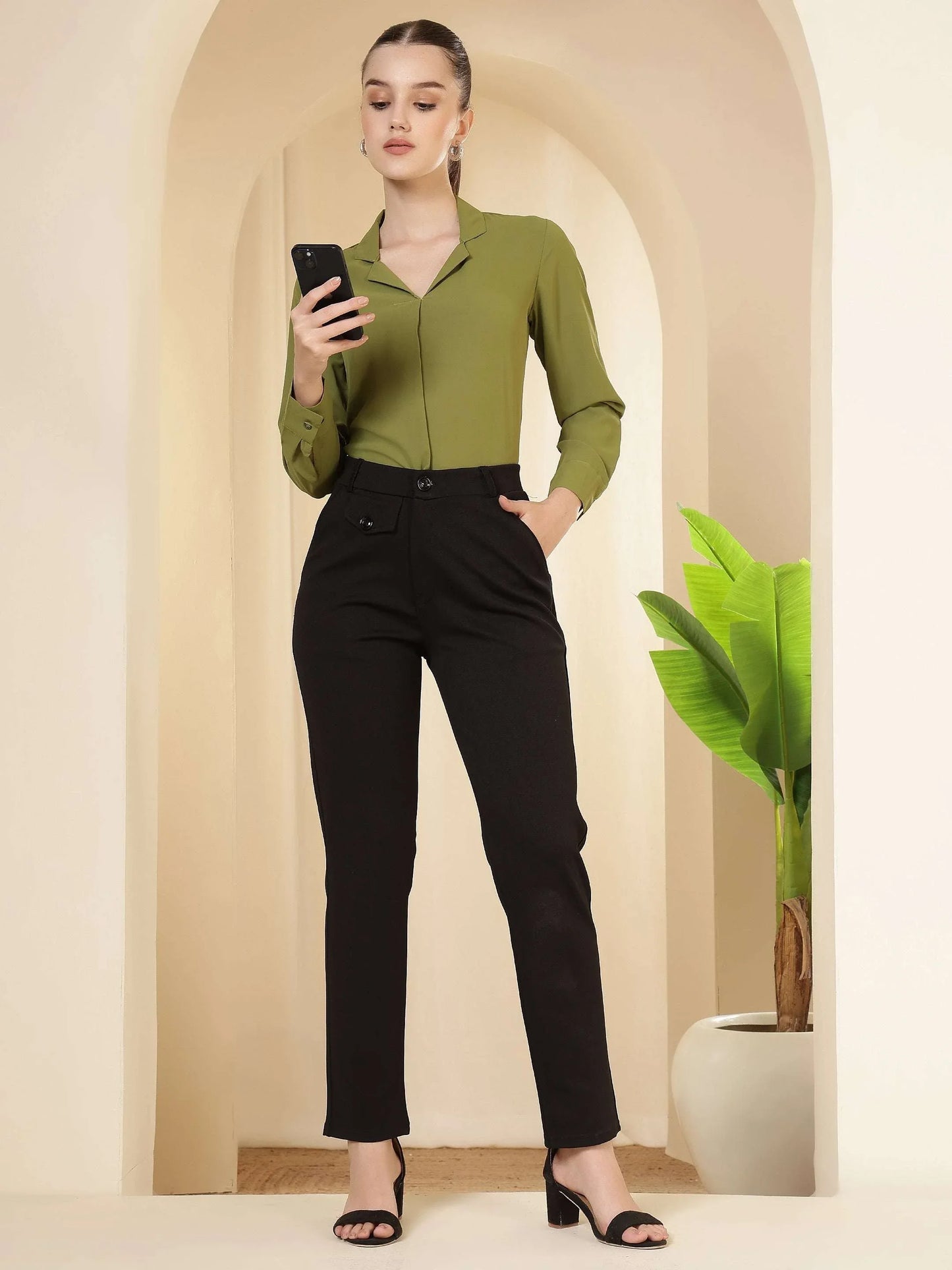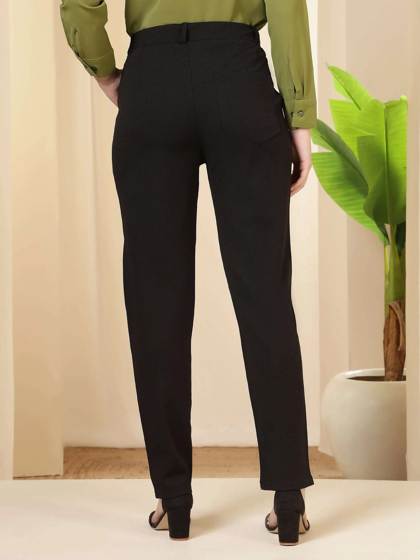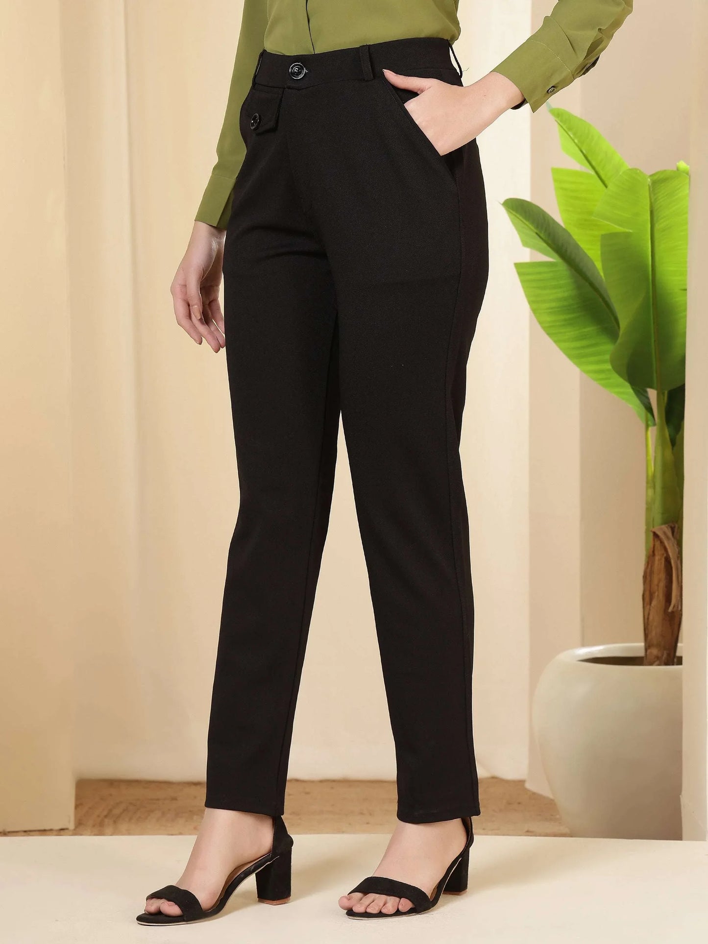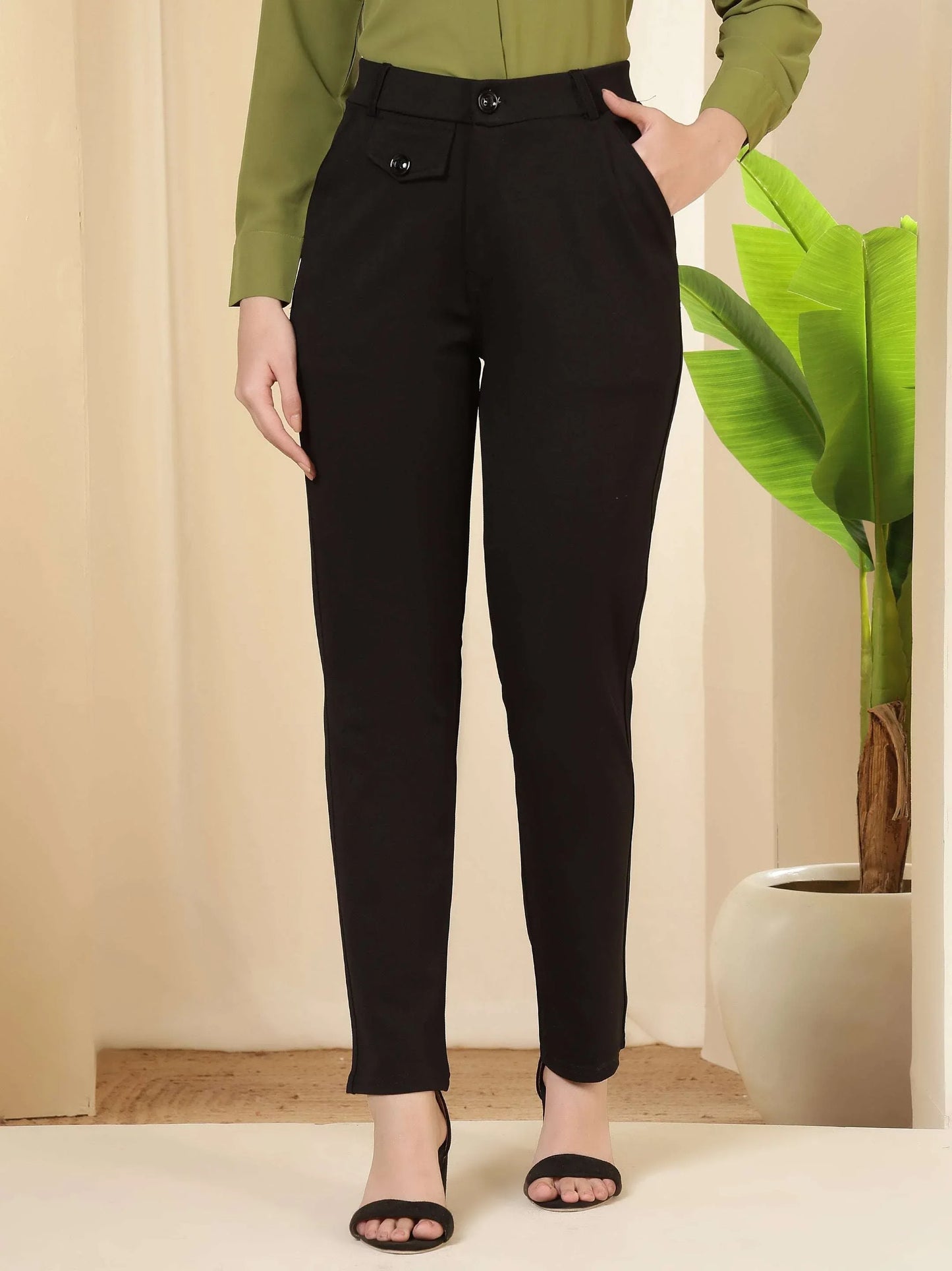 Regular price Rs. 699.00These trousers feature a tailored, streamlined silhouette with a structured waistband and clean front, giving them a polished and professional appeal. Designed to sit comfortably at the waist, they offer a refined fit through the hips and legs while maintaining ease of movement. The minimal detailing and neat finish enhance their formal character, making them a versatile choice for office wear, business meetings, and smart occasions. Pair them with shirts, blouses, or blazers for a sophisticated and confident look suitable for a modern work wardrobe.