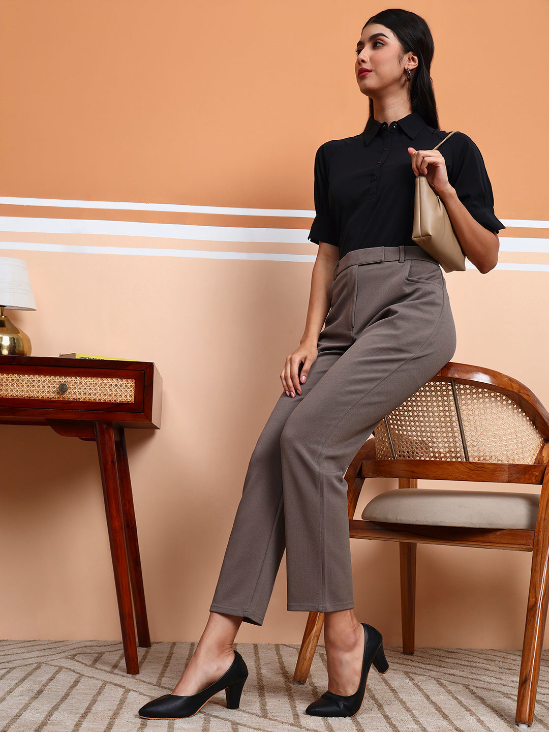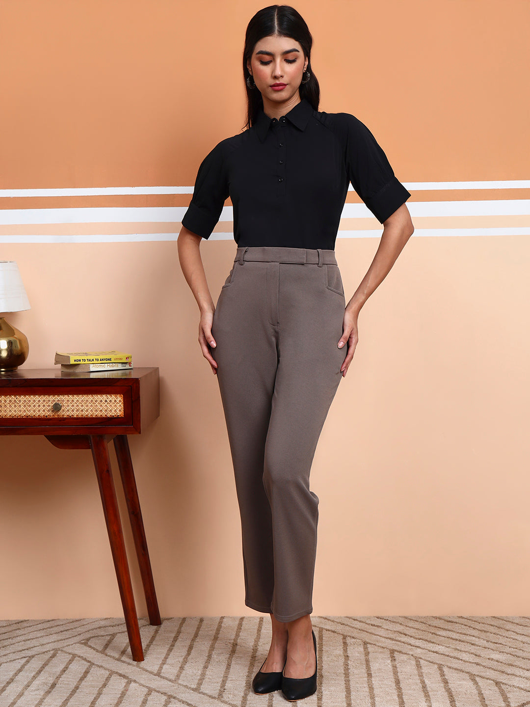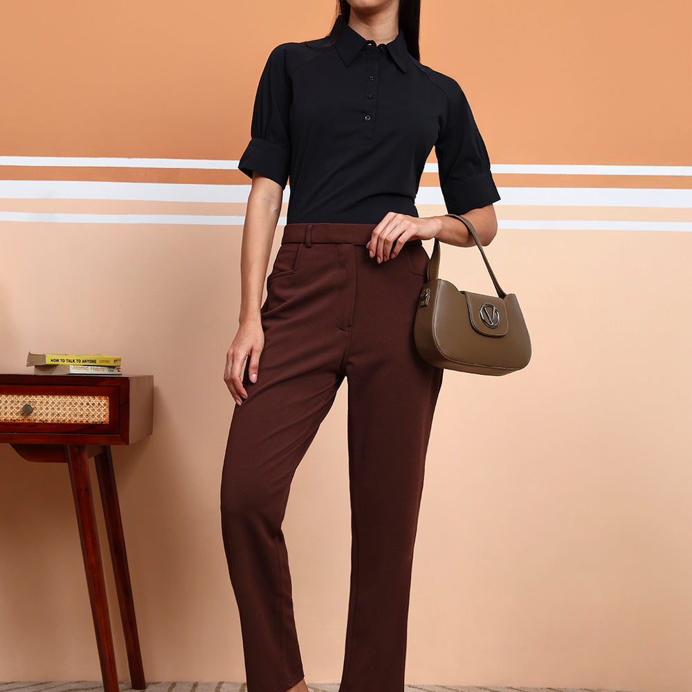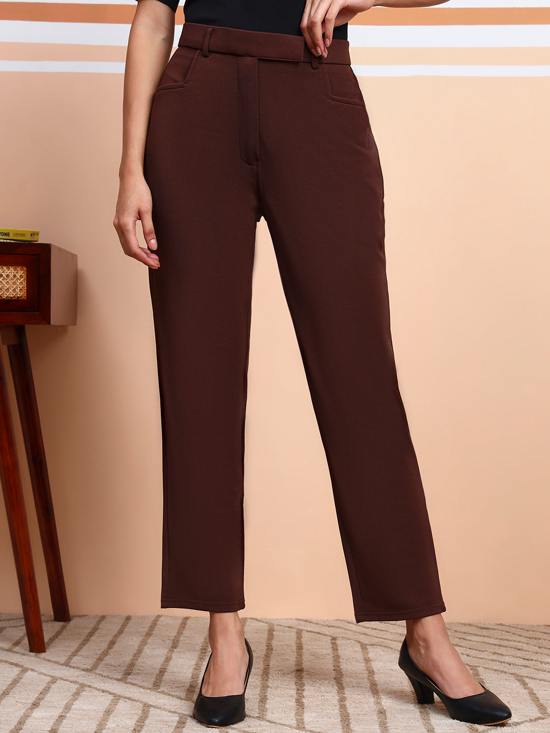 Crafted with meticulous attention to detail, these trousers are designed to accompany you through various professional engagements with ease and elegance. Wear them to the office for a polished everyday look that exudes confidence and professionalism. Elevate your presence during business meetings, where your attire speaks volumes about your dedication and attention to detail. Attend corporate events with grace and sophistication, knowing that these trousers ensure you stand out for all the right reasons. From professional gatherings to formal functions, these trousers effortlessly transition from day to night, ensuring you always look your best. Wherever the occasion, trust in our Modern Classic High-Rise Cotton Trousers to elevate your style and leave a lasting impression.