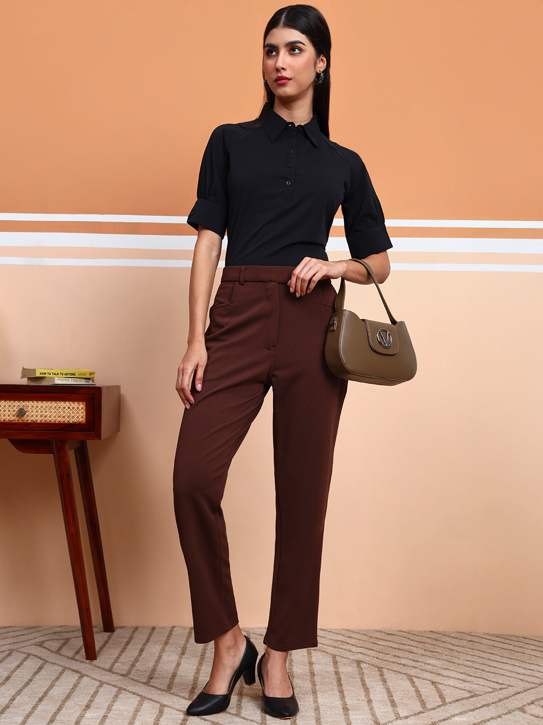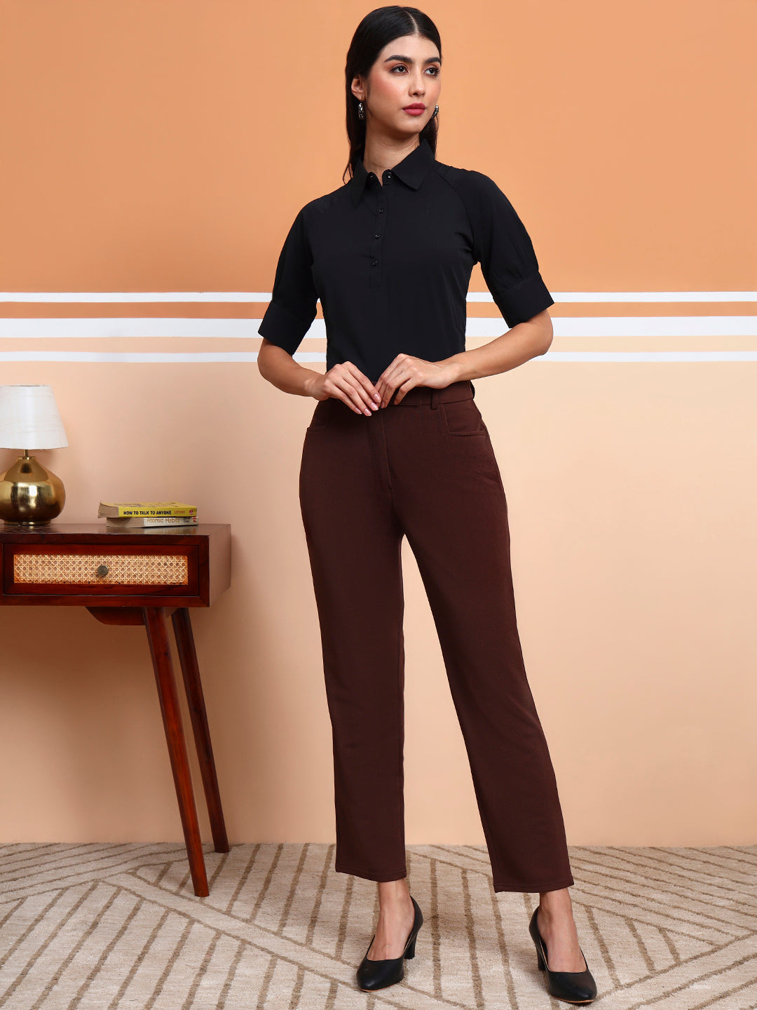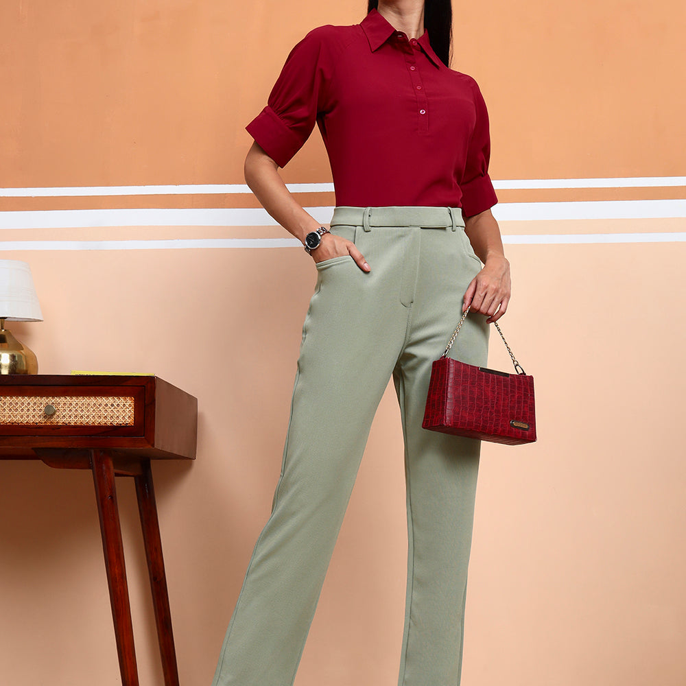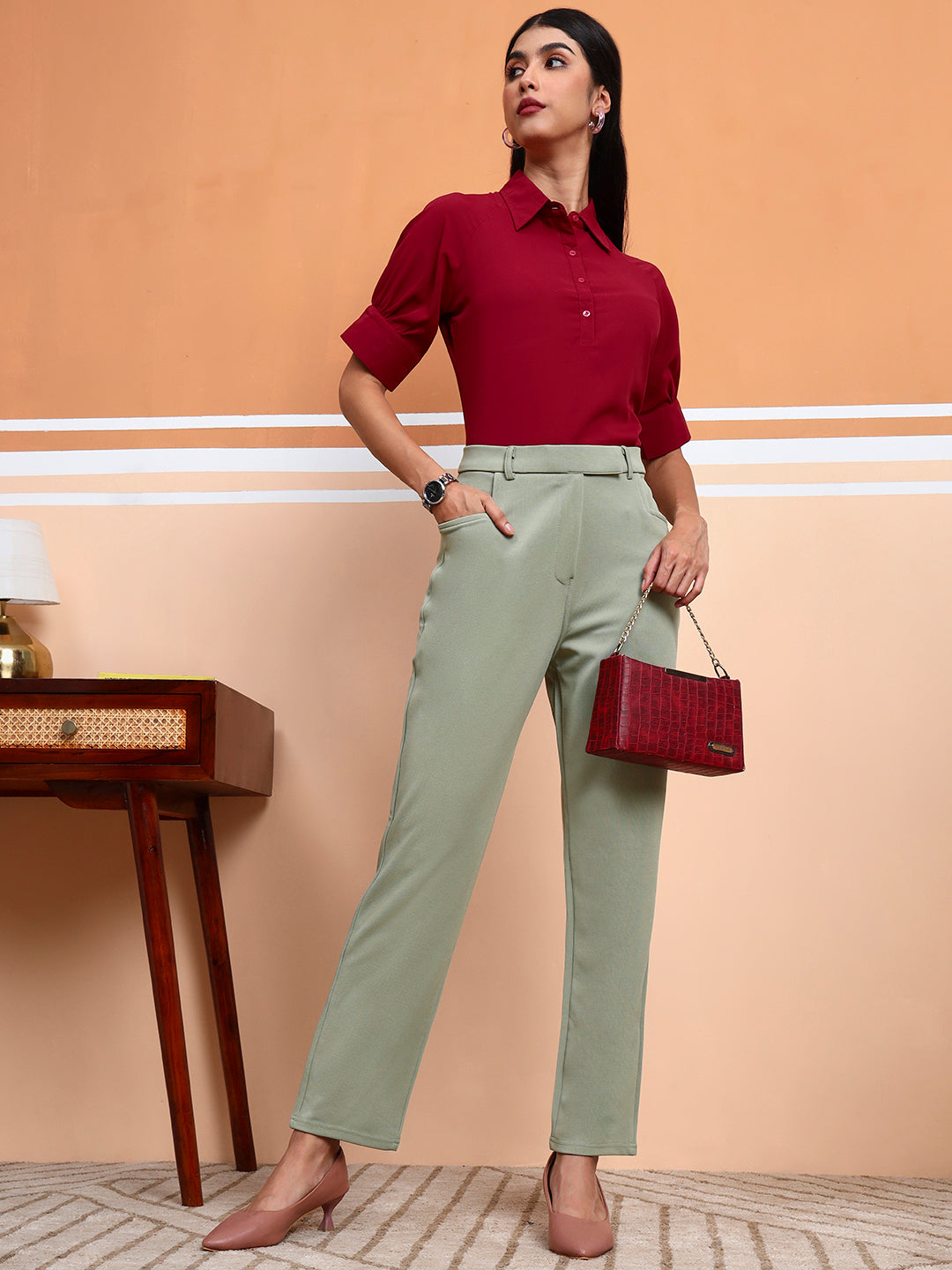 Crafted with meticulous attention to detail, these trousers are designed to accompany you through various professional engagements with ease and elegance. Wear them to the office for a polished everyday look that exudes confidence and professionalism. Elevate your presence during business meetings, where your attire speaks volumes about your dedication and attention to detail. Attend corporate events with grace and sophistication, knowing that these trousers ensure you stand out for all the right reasons. From professional gatherings to formal functions, these trousers effortlessly transition from day to night, ensuring you always look your best. Wherever the occasion, trust in our Modern Classic High-Rise Cotton Trousers to elevate your style and leave a lasting impression.